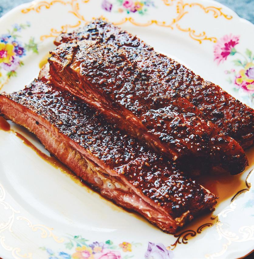 “We smoke it low and slow for about three hours, and every 30 minutes, we brush it with melted butter,” Saw explains.