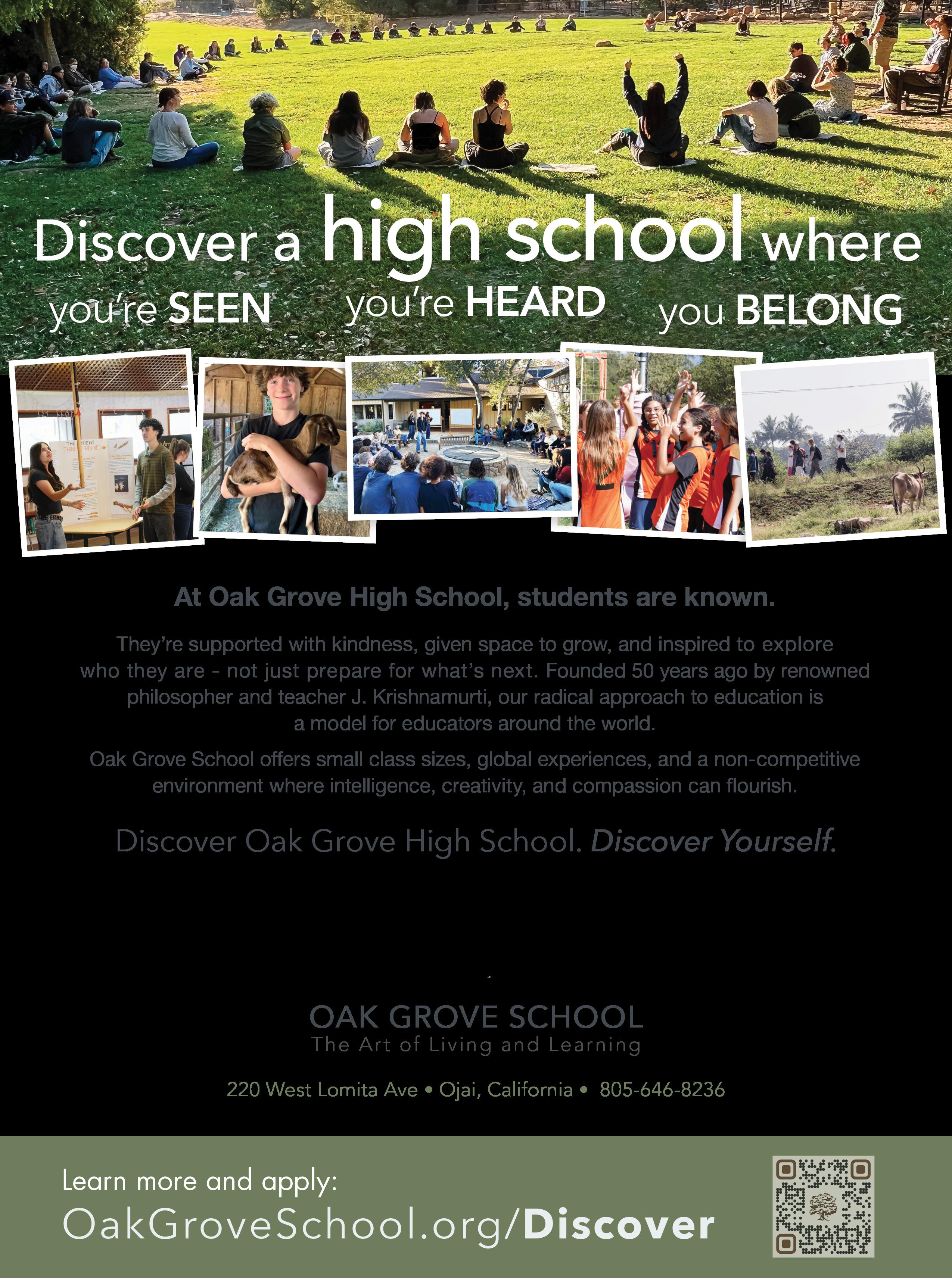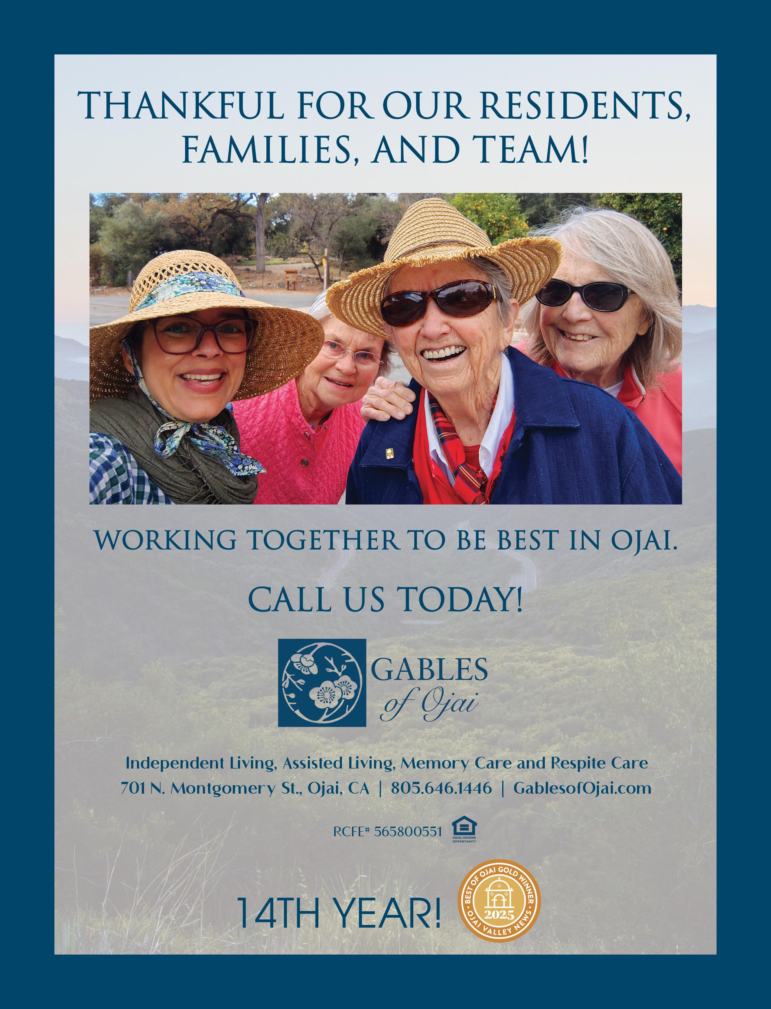As Ojai listens to and takes care of its own, it becomes resilient. The more we question, consider, and fearlessly work together to grow our best community, the more self-reliant and joyful we can be. Come join the micro-movements of our town. What you can do best for your country just may be doing your best for your town.