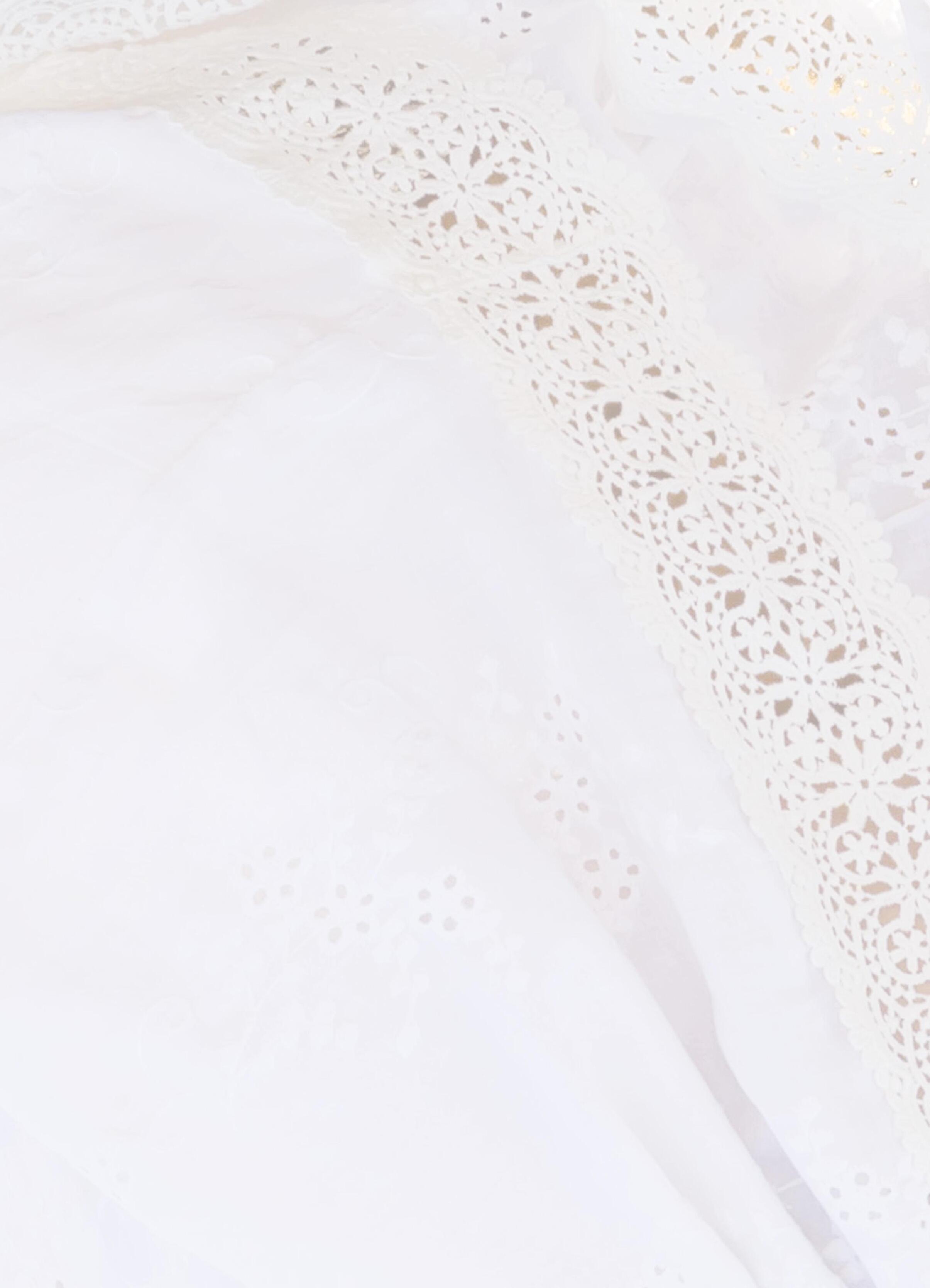 Collaborating with Miller, Alicia designed a lacy corseted gown with a slit up the side. The design perfectly mirrored the lace in the heirloom veil Alicia wore.