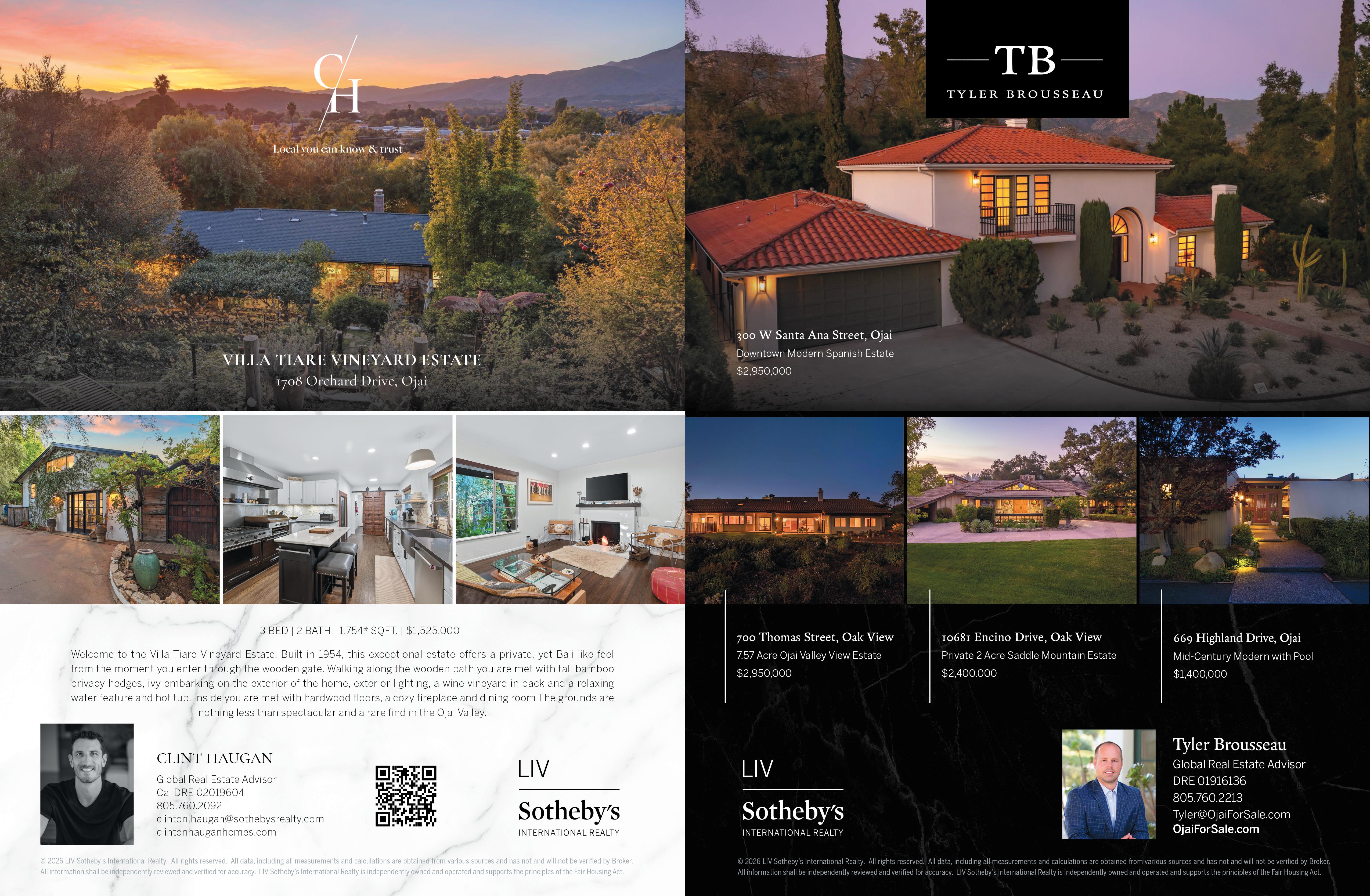Perched along Ojai’s iconic Foothill Road, this glass-walled architectural sanctuary is defined by light, serenity, and expansive 270° views. Built in 2017 and thoughtfully re-imagined in 2022, the 3,154± sqft single level home pairs minimalist design with seamless indoor-outdoor living. A 1,117± sqft pavilion with showcase parking, welness studio, and sauna, along with additional creative retreats completes a private compound set on 1.87± acres with pool, spa, and mesmerizing epic sunsets.