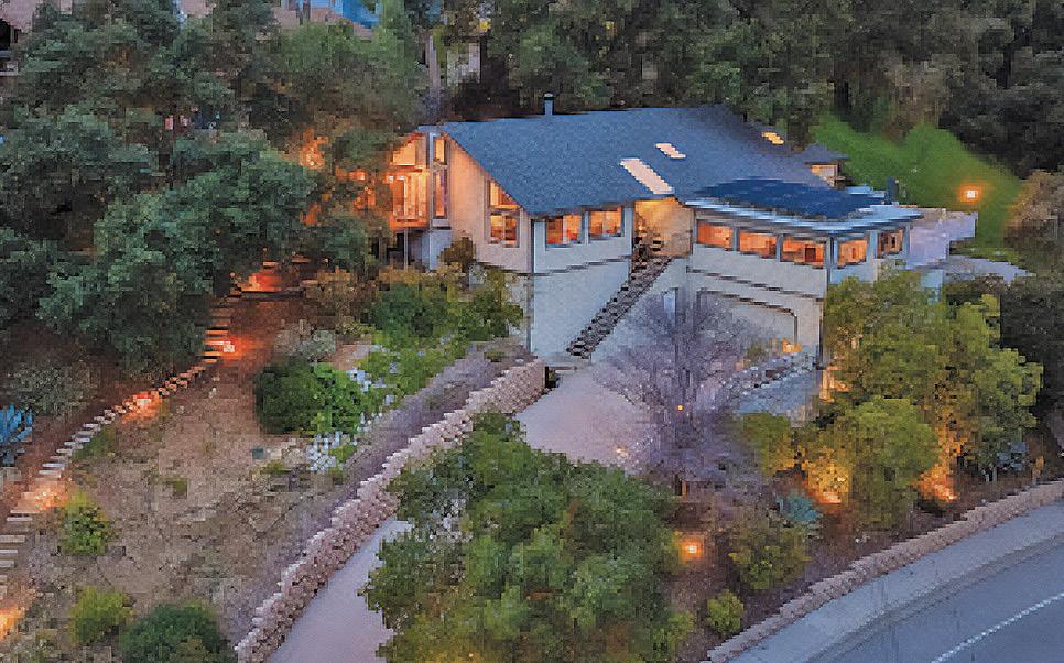 Fully Remodeled Five Bedroom, Five Bathroom Mid-Century Modern with Spanish Colonial In uence with Brazilian Wood Floors, Pool & Spa, Two Primary Suites, Guest Quarters, Media Room, Amazing Views 276RunningRidgeTrail.com | $3,499,000