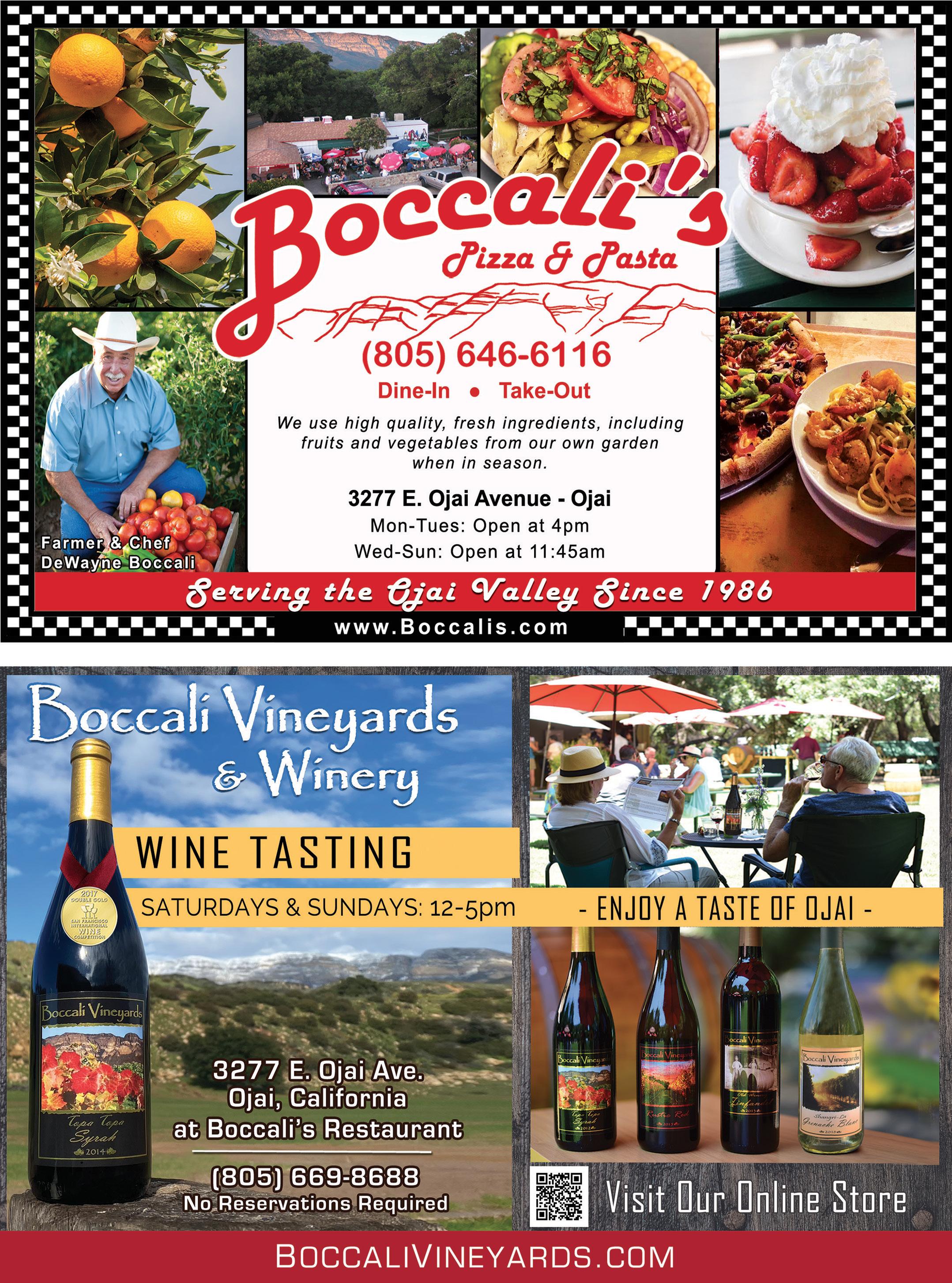 Open Daily for Breakfast & Lunch 8am - 2pm Closed Tuesday & Wednesday Best Breakfast Best Customer Service Best Brunch 2023 2023 2023 328 East Ojai Ave. • 805-646-0207 120 OJAI MAGAZINE | SPRING ‘24