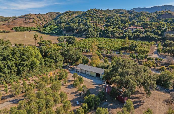 First time on the market- A beautiful farmhouse with captivating views on approx. 43 acres. Set back from the road and hidden amongst an orange grove sits the main residence, an elegant farmhouse. The grandeur begins with the majestic entry leading to the great room with beamed ceilings and bar area, walls of windows and a brick replace anked by built-ins. The 3-bedroom, 3-bathroom home is a perfect blend of classic charm and modern amenities. Spread over 3,350 sq.ft. the well-appointed guest rooms o er a warm and inviting retreat for your guests. Oak ooring and co ered ceilings create a warm, inviting atmosphere. The spacious rustic brick kitchen is both functional and aesthetically pleasing which adjoins the formal dining room with vaulted wood beamed ceilings and a brick replace leading to the crafted dark-wood paneled study which could be used as a fourth bedroom. The spacious primary suite o ers comfort and tranquility showcasing impressive, exposed wood beams. This eco-conscious estate is equipped with solar panels, reducing energy costs and environmental impact including a backup generator system. The property includes two APN’s, a private water well and a 3-inch ag meter from casitas water. | $5,500,000