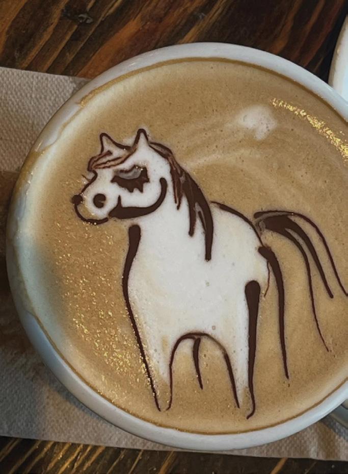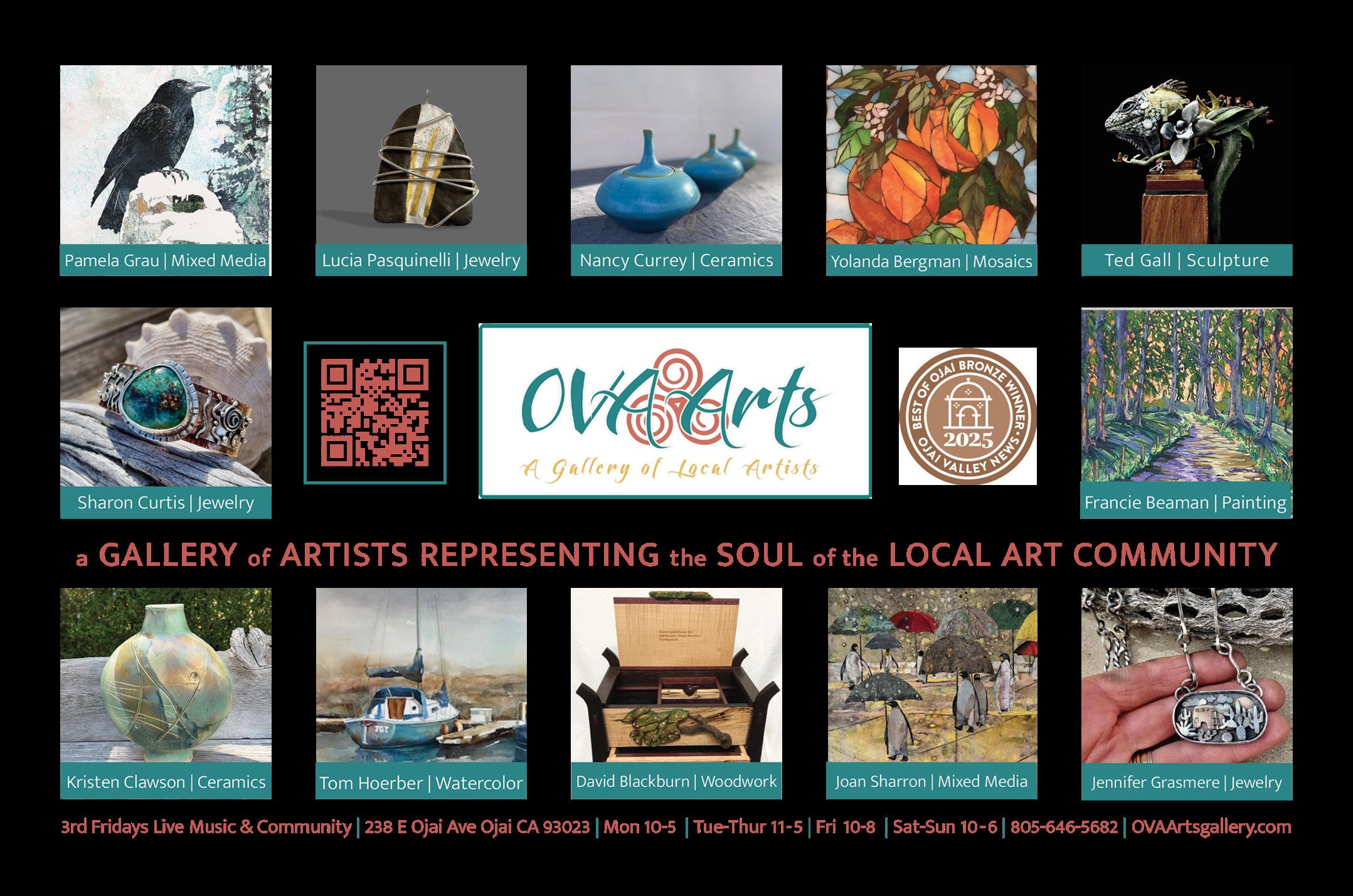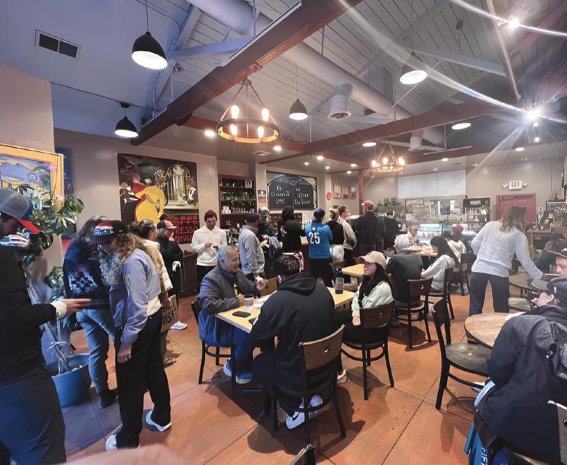 and institutions, serving kombucha from Revel and shortbread from Love Shortbread in Ojai, and baked goods and bagels from Santa Barbara and Carpinteria. The Ojai Valley Athletic Club and The Nest also serve Jones’ coffee. Inside Ojai Coffee Roasters is the “Art Wall,” displaying “30 years’ worth of local artists,” Jones said.