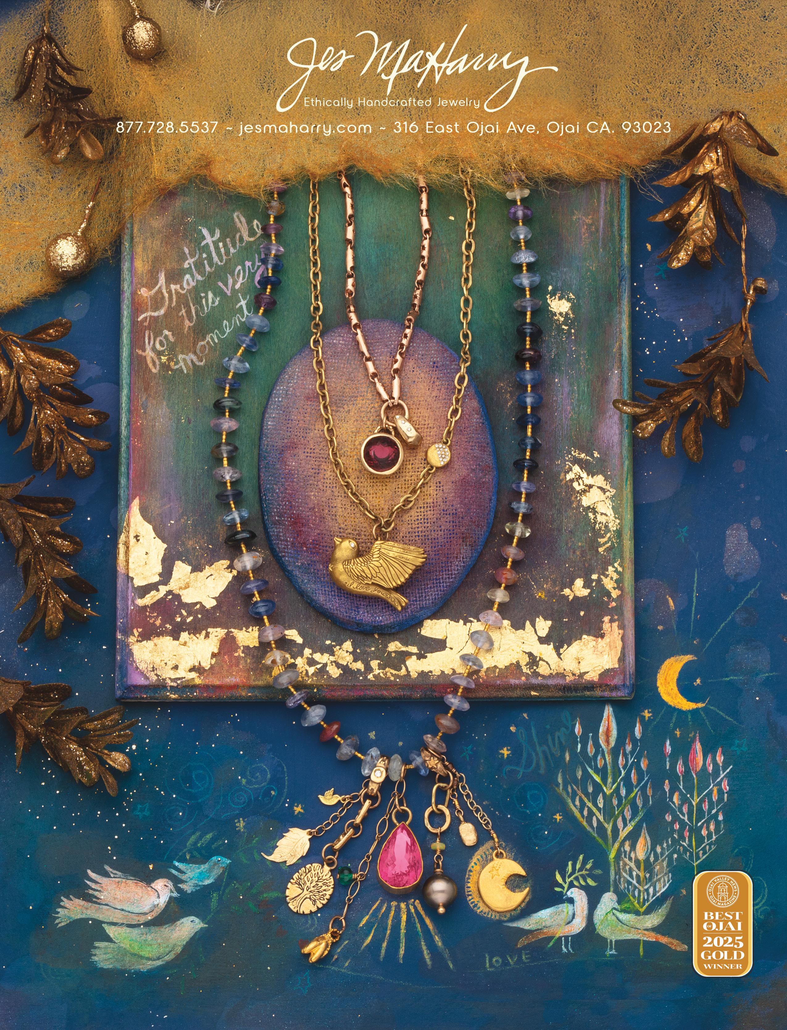 This Winter 2025/26 is a serious season, and the psychic weight people are carrying is palpable. Our Ojai Magazine writers take up the story gamut of Ojai life from UFOs, nuclear weapons, the Dalai Lama, and humanitarian missions, to fashion, coffee, and farming and more.