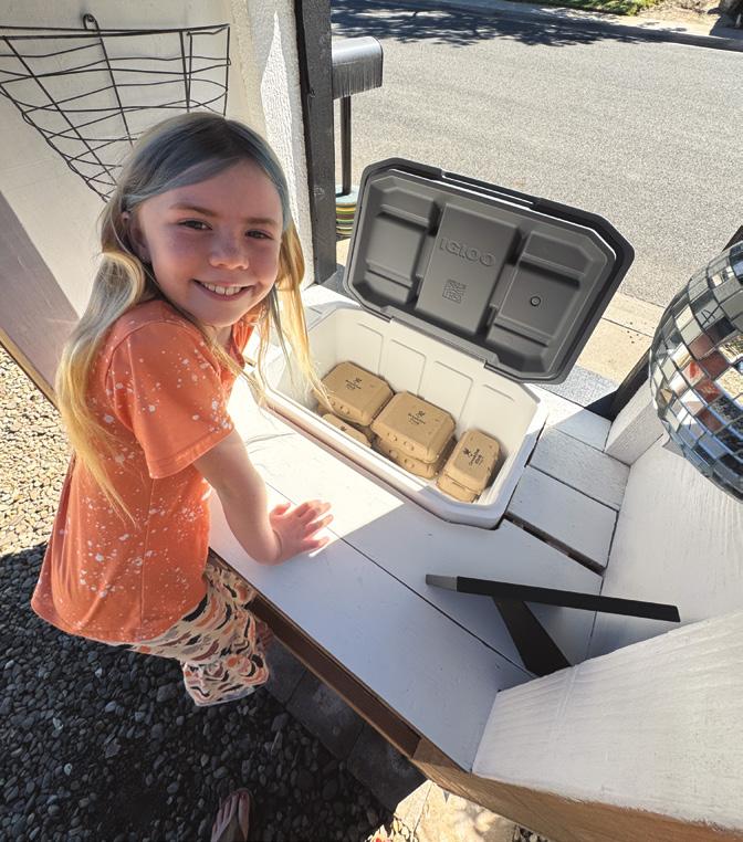 At the moment, the cart mainly offers eggs, but the family sees potential for more. Their yard is filled with fruit trees, and when the oranges, lemons, and persimmons ripen, the family will add them to the cart. Kennedy and her friends are eager to sell lemonade during warmer months, and Daniel has planted heirloom vegetables that might be part of the offerings.