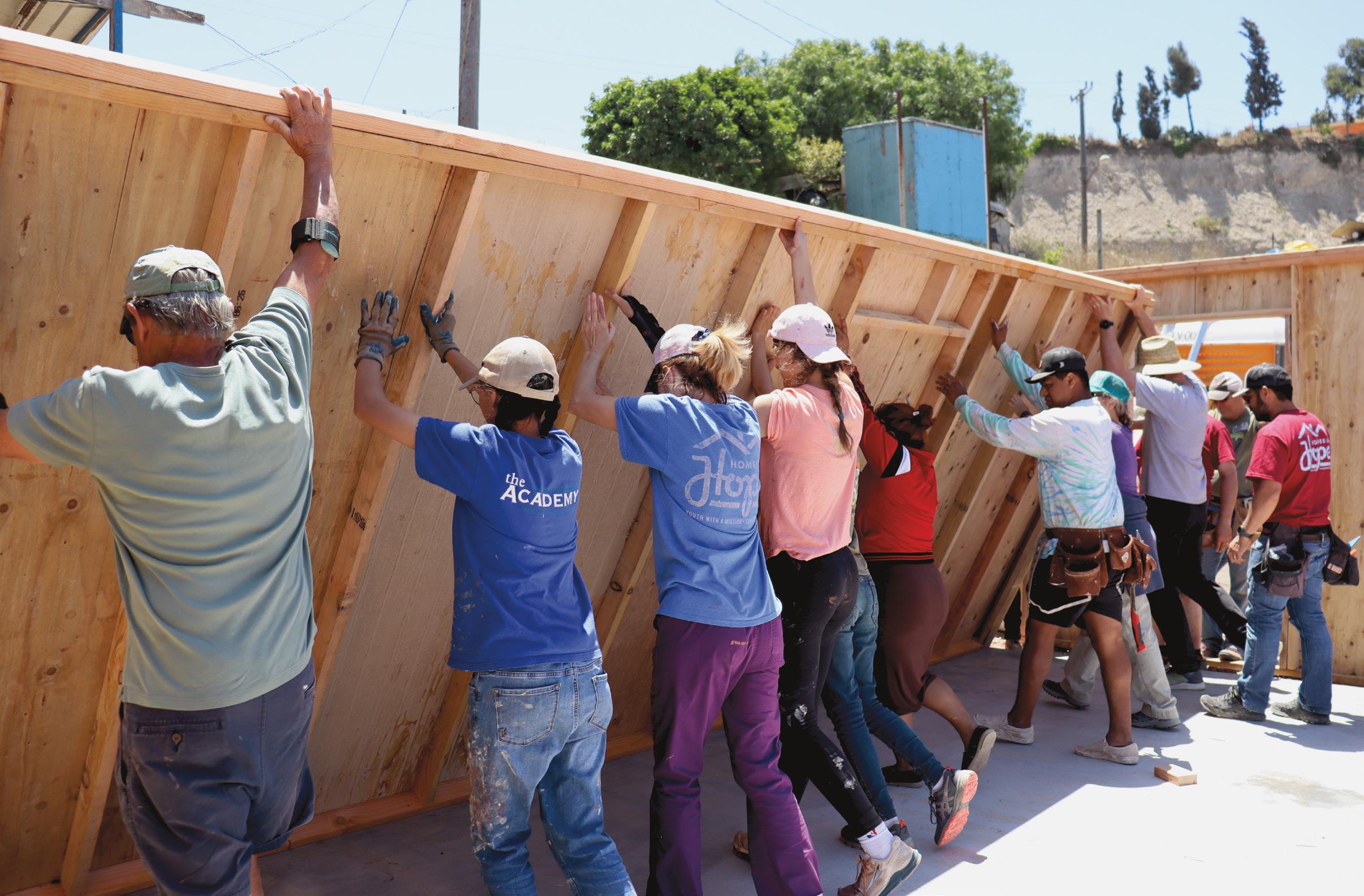 Left: Pastor David Johnson, at left, helps build a home in September 2025.