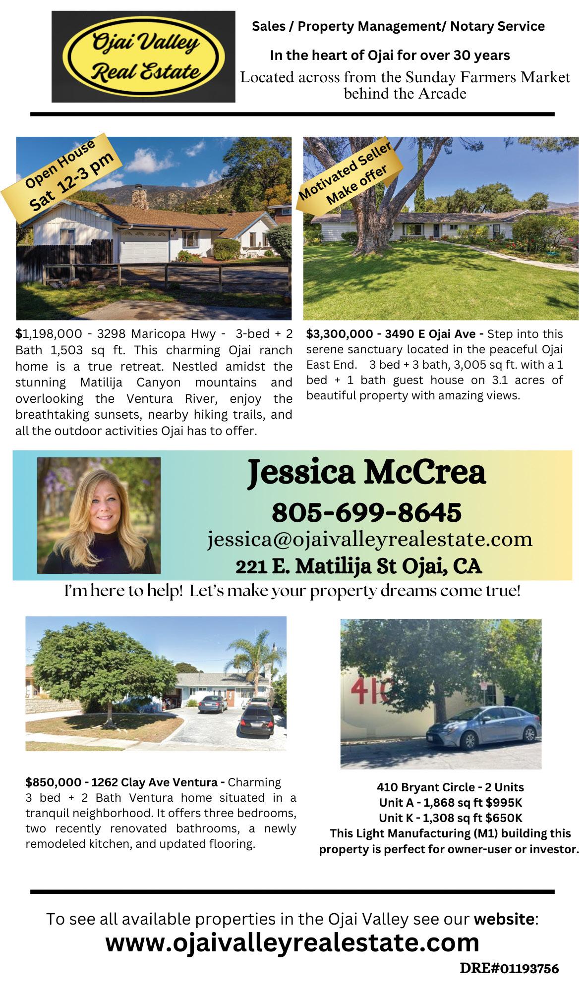 This beautiful 4,397 sq ft home is on 2 99 acres surrounded by stunning oak trees in the gated community of Rancho Matilija The list of amenities are endless; all bedrooms have en suites, main bedroom is on the ground floor, three fireplaces, vaulted ceilings, amazing 1,600 sqft garage (that has an RV bay), gorgeous pool and spa, and a separate 600 sq ft large bedroom and office guest house with bathroom This home is perfect to entertain and enjoy the privacy of the spectacular surroundings! Fantastic location, close to Ojai, Ventura and Santa Barbara