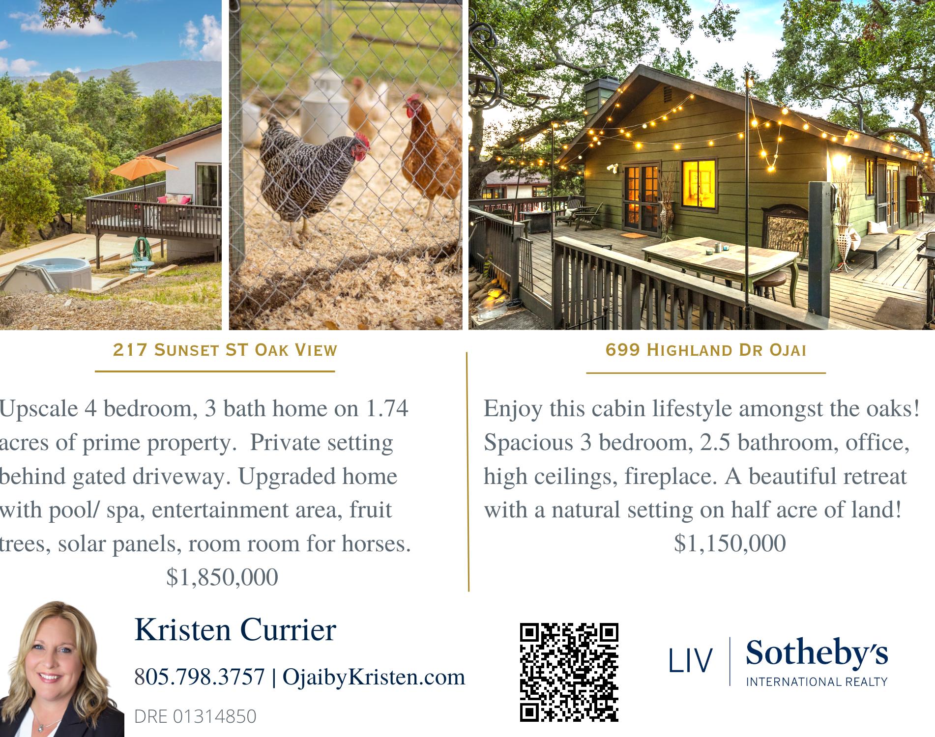 © 2023 LIV Sotheby’s International Realty. All rights reserved. Each Office is Independently Owned and Operated. Cassandra VanKeulen Ojai Valley Realtor® DRE# 01929366 805.798.1272 Anne Williamson Ojai Valley Realtor® DRE# 01448441 805.320.3314 LIV Sotheby’s International Realty 727 West Ojai Avenue, Ojai CA 93023 805.646.7288 Nothing Compares SOTHEBYSREALTY.COM