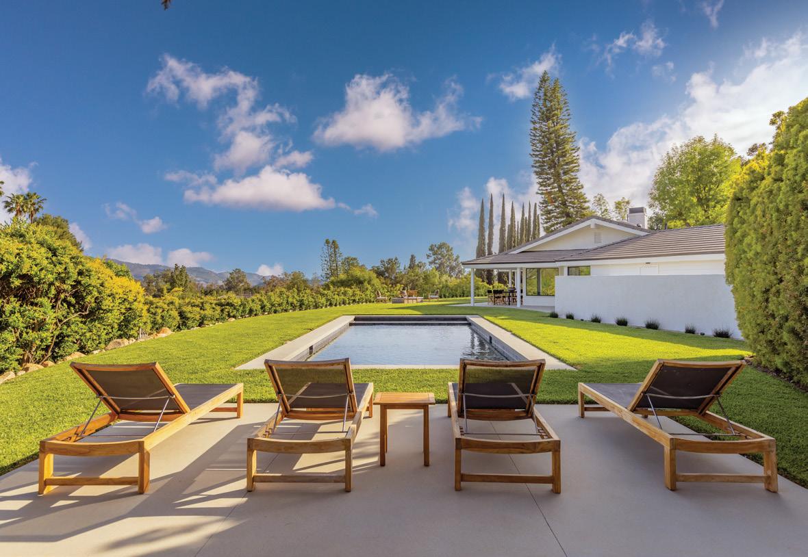 at a grand resort. 537 DEL ORO DRIVE — This gated 4 bed, 4 bath Italian Villa inspired estate on over an acre with marble & hardwood floors throughout is perfect for entertaining and is just a few minutes to downtown Ojai. Nearly every room opens to the huge deck & backyard with pool, cook’s dream outdoor kitchen, nanny’s quarters & treehouse. DONNA SALLEN RE/MAX GOLD COAST REALTORS DRE 01488460