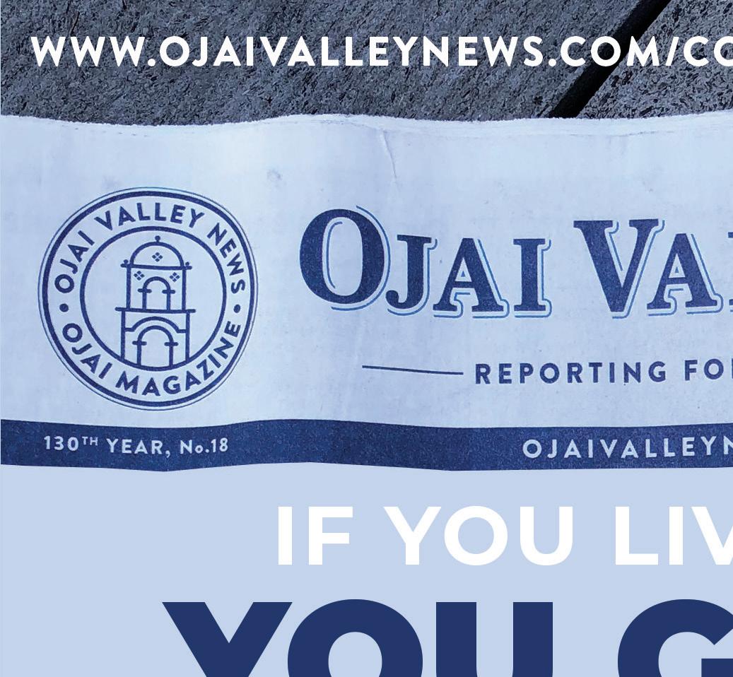 SUBSCRIBE TO YOUR LOCAL INDEPENDENT FREE PRESS OJAIVALLEYNEWS.COM 3500 Matilija Canyon Road, Ojai | 2 Bd | 1 Ba | Offfered at $1,300,000 Farm to Table Living Anne Palmquist Broker Associate 805.701.0130 Cal DRE 01295114 anne.palmquist@sothebysrealty.com Each office is independently owned and operated. OJAI Live The Ojai Dream. OjaiDream.com 805-766-7889 Sharon MaHarry, Broker Associate BRE #01438966 waterfalls. the This center Annual lease, $8,495 per month. Call/text for appointment. 555 Camino Cielo | $3,295,000 Transport yourself to another world... a world of full moons and waterfalls, aromatic orange blossoms and papaya. This 23-acre biodynamic farm with 3,211 sq. ft. home is just 5 miles from the center of downtown Ojai but a world away from the city, where every morning is a treat to the senses in a micro-climate that’s cooler than the valley yet never freezes. Come sense the magic. 309 N. MONTGOMERY | $1,449,000 Vintage 2BR cottage plus large studio, screened porch with stone fireplace, and office on private 1/4 acre. SERENITY FOR LEASE HUGE PRICE REDUCTION! DOWNTOWN HIDEAWAY