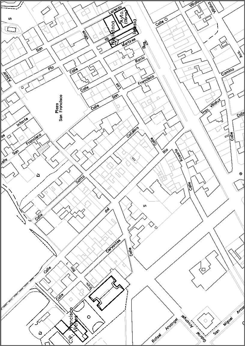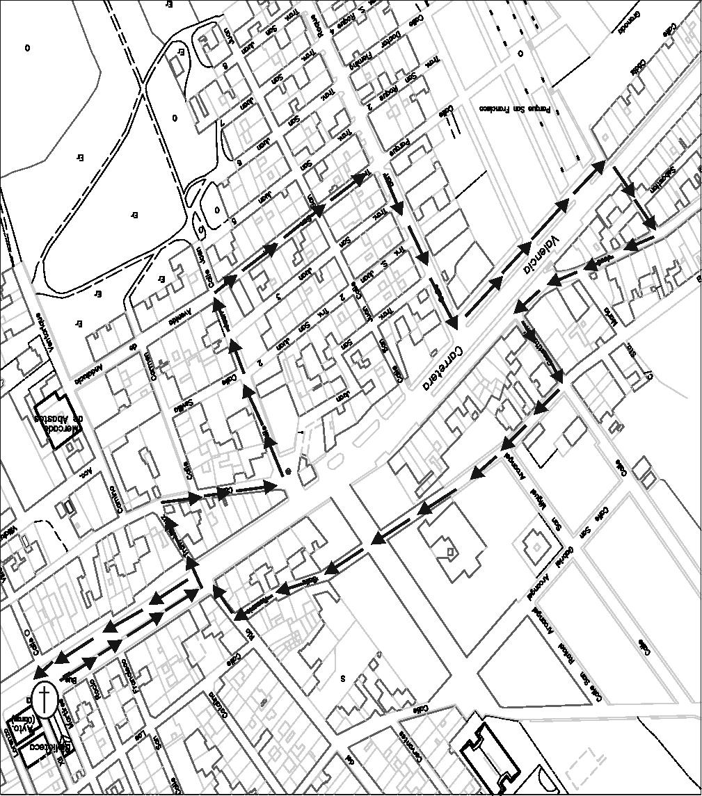 SalidaIglesia,C/PioXII,C/SanLorenzo,C/Trav.Viñas,C/SanLorenzo, C/Viñas,C/Río,C/Rosario,C/NuevaApertura,C/CaminodeAjozar, C/Río,C/Carretera.EntradaIglesia.