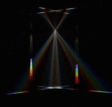 Thelightparticleundergoesrefractionandreflection on each surface throughout the simulation using a 15% feedback system - to determine the optimized orientations for dichroic films.