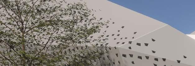 The resulting shape is manifested in the orientation of the hexagons while mantaining solar heat gain and glare principles