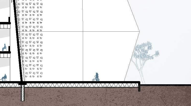 The elevation considers the operational hours of the public library in Nigeria which is typically fro 9am - 7pm. This implies that there is minimises the need for shading from the early morning sun and attention is focused towards shading the building from the evening sun, resulting in the slanted form