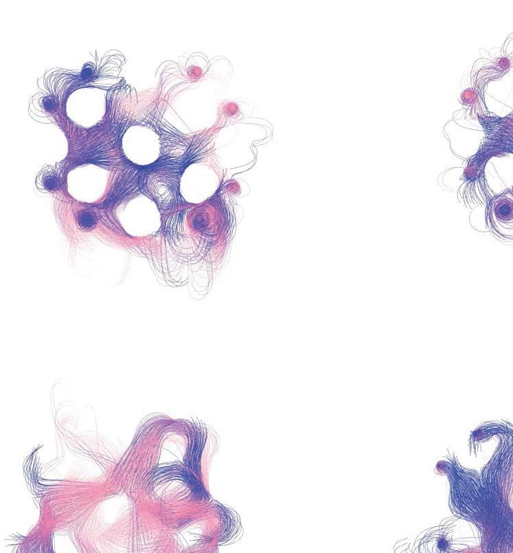 DrawingMachine studies agent based behaviour in a unique way. The emphasis is shifted from “where do the agents go”, to “what do these agents leave behind?”. Constrained to a line, the project explores a wide range of parameters from extreme to minimal control. The emergent forms are a middle ground, between the borders of constraints and chaos. The emphasis on process opens up a procedeure that articulates an endless possibility