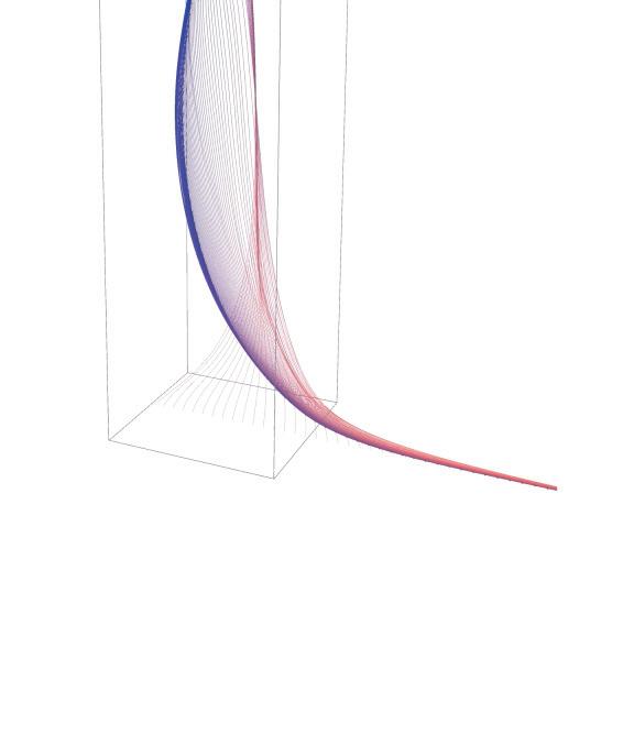 The resultant form before the agents disperse into random behaviour was identified with an agent count value of 1000. The resulting form here is of interest becaue of how agents switch from he firstdimension to the third dimension creating an elegant form as a result
