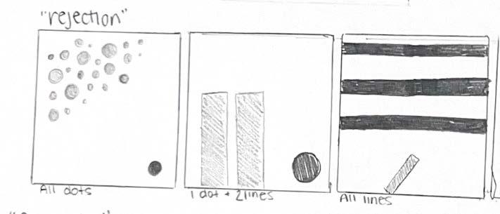 The overall objective of this project was to quickly create image compositions using dots and lines and similar shapes focusing first on experimenting and then improving the drafts. The goal was to express feeings and emotions through using the simple compositions of dots and lines.