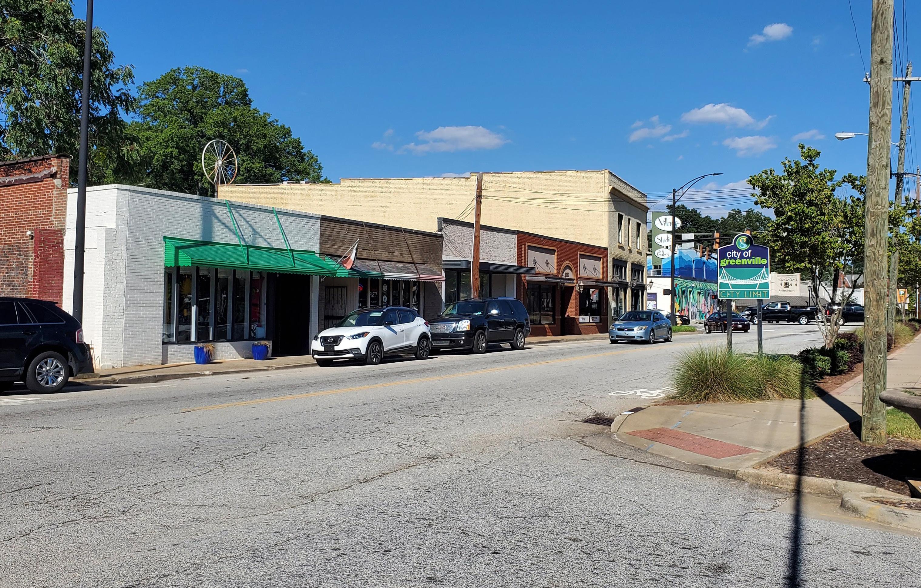 Though the Village is small, it currently needs more connectivity to its major anchor institutions and developments that do not exist on Pendleton Street. These buildings include Poe West, West Village Lofts, the Art Bomb, and the Greenville Center for Creative Arts (GCCA). The Lofts at Woodside Mill are slightly outside our designated study area but also merit a connection approximately 1500 ft from Pendleton Street. A couple of art galleries are also located off the main Pendleton corridor, making them hard to find, and seemingly “out of the way.” While these amenities, retailers, and multi-use buildings, such as the West Village lofts, provide opportunities for residents and guests, they need help locating amenities. The Village should promote all it has to offer! Still, even some businesses on Pendleton Street are not known or well-marked. This will increase business for some of these places, giving them more direct linkages and connections to the well-trafficked Pendleton corridor. While Pendleton Street is designed to prioritize pedestrians, without appropriate guiding signage, it becomes hard to find Poe West, though it is only a short walk away. Signage and wayfinding could help direct pedestrians, multimodal transportation options, and vehicles through the corridor and residential areas more clearly and safely.