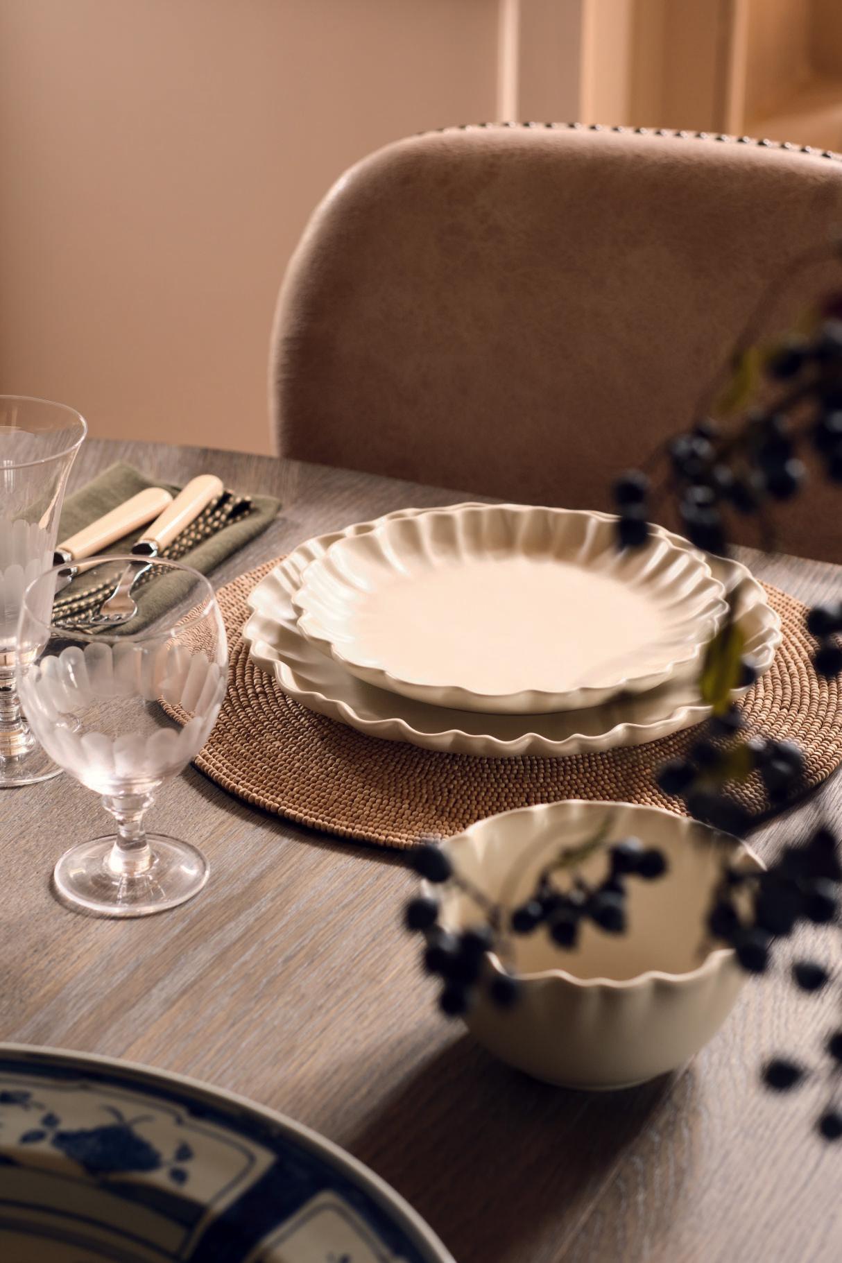 LEFT Stafford Seating China Clay Leather | Dining Chair with Arms $950 | Dining Chair $850 Hawkley Extendable Dining Table $4,595 Papavera Vase Medium $225 Marissa Stoneware 6x Dinner Plates $120 | 6x Side Plates $95 | 6x Bowls $95 4x Laucala
