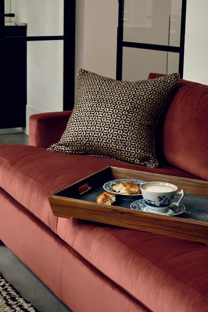 We know that homes are personal, which is why we ensured our made-toorder collection puts you in the creative driving seat. You can choose from eight sofas, seven armchairs and a footstool, each of which bridges the gap between classic and contemporary style. “You’ll see embellishment and print in our core collection,” says Sue, “but with Tailored we really wanted craftsmanship and comfort to take center stage, through the shapes, structure and even the stitching.” As for the upholstery, the choice is yours, too. All styles are available in fabrics spanning natural Belgian linens, leather, wool, linenwool blends and their “clever” linen and