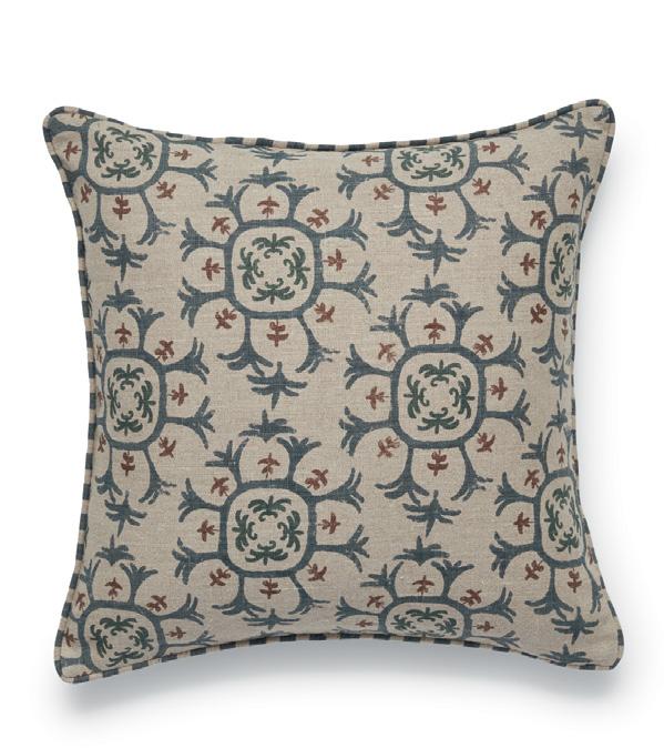 Primula Pillow Cover Natural/Multi $95 Magnante Side Table Tall $1,295 Beta Table Lamp $295 (seen with Girandole Shade Multi $160) Set of Six Calla Prints $495 Caspara Rug $3,995 Sheki Upholstered Ottoman $2,195 Talasa