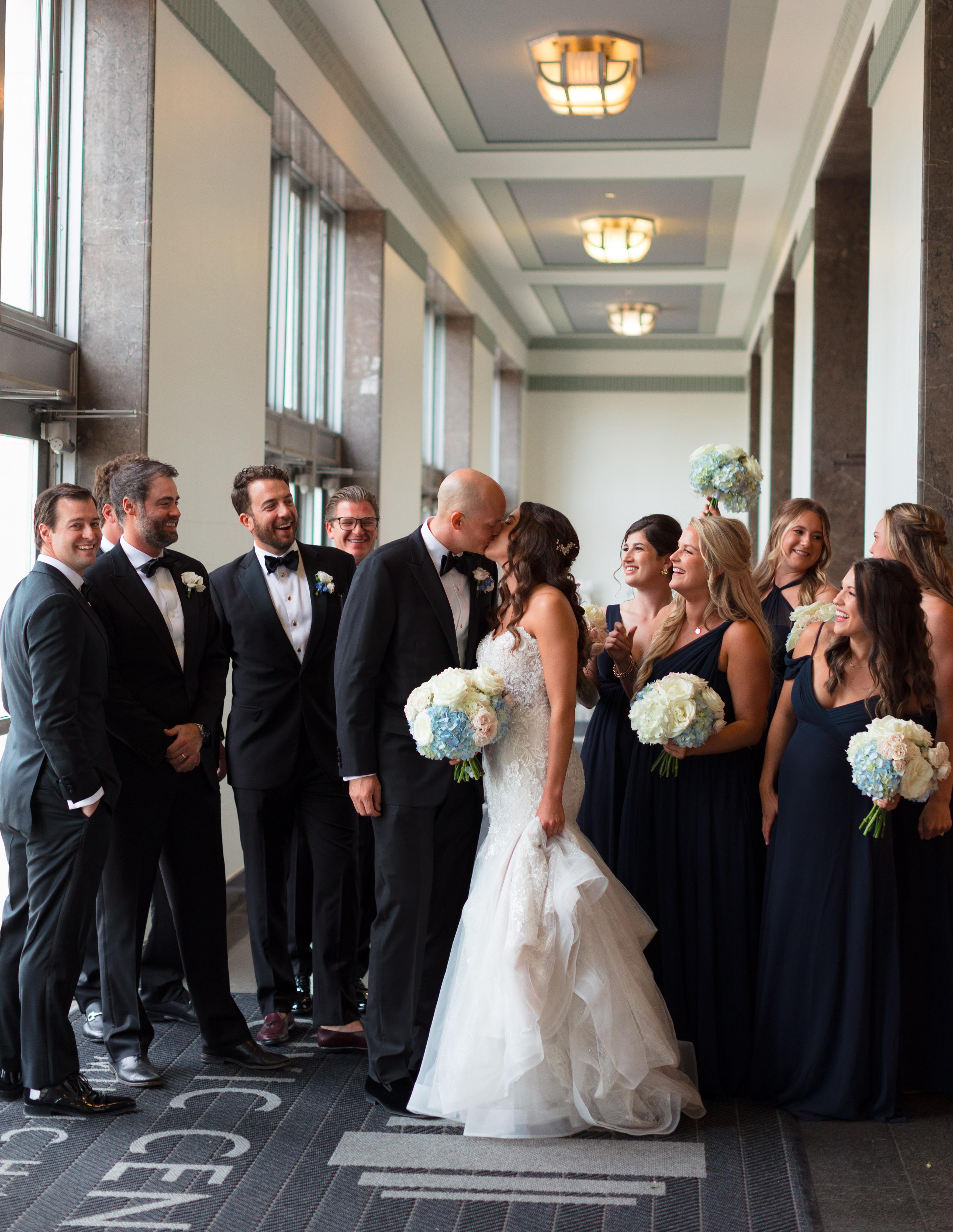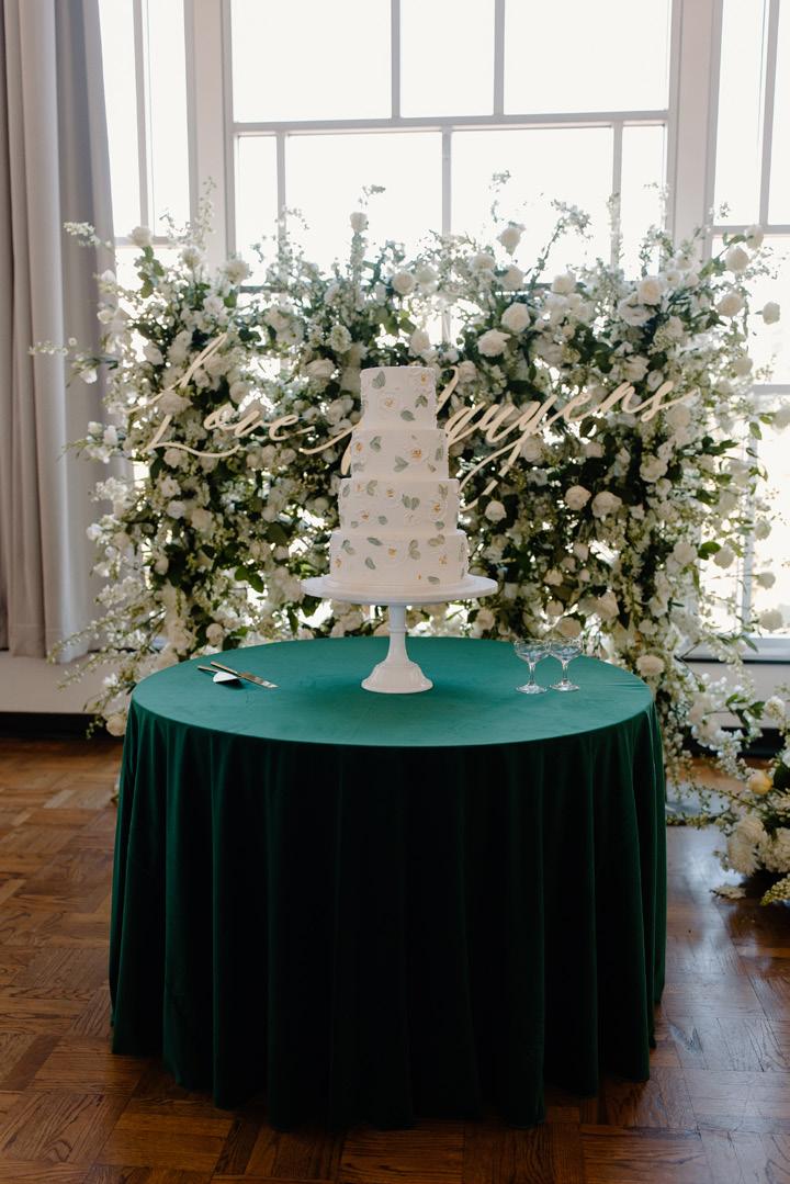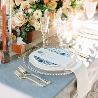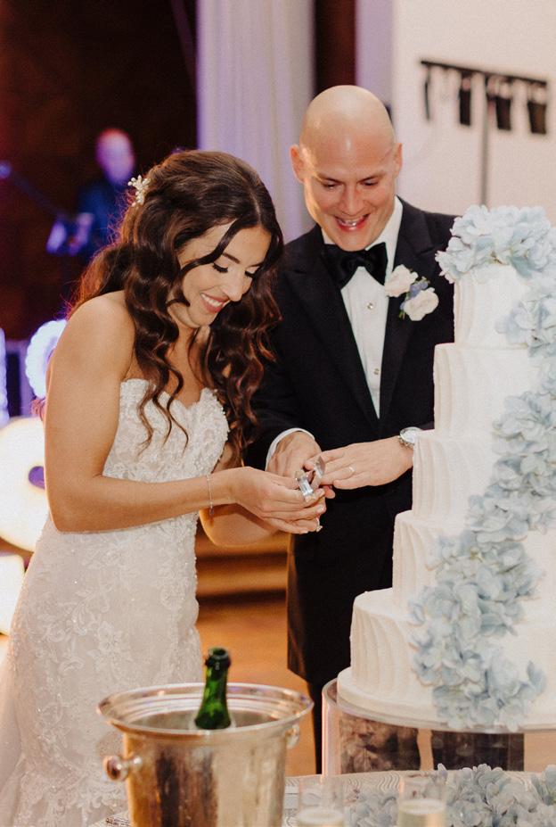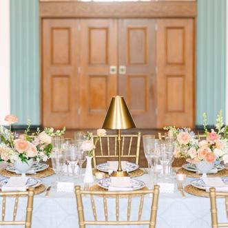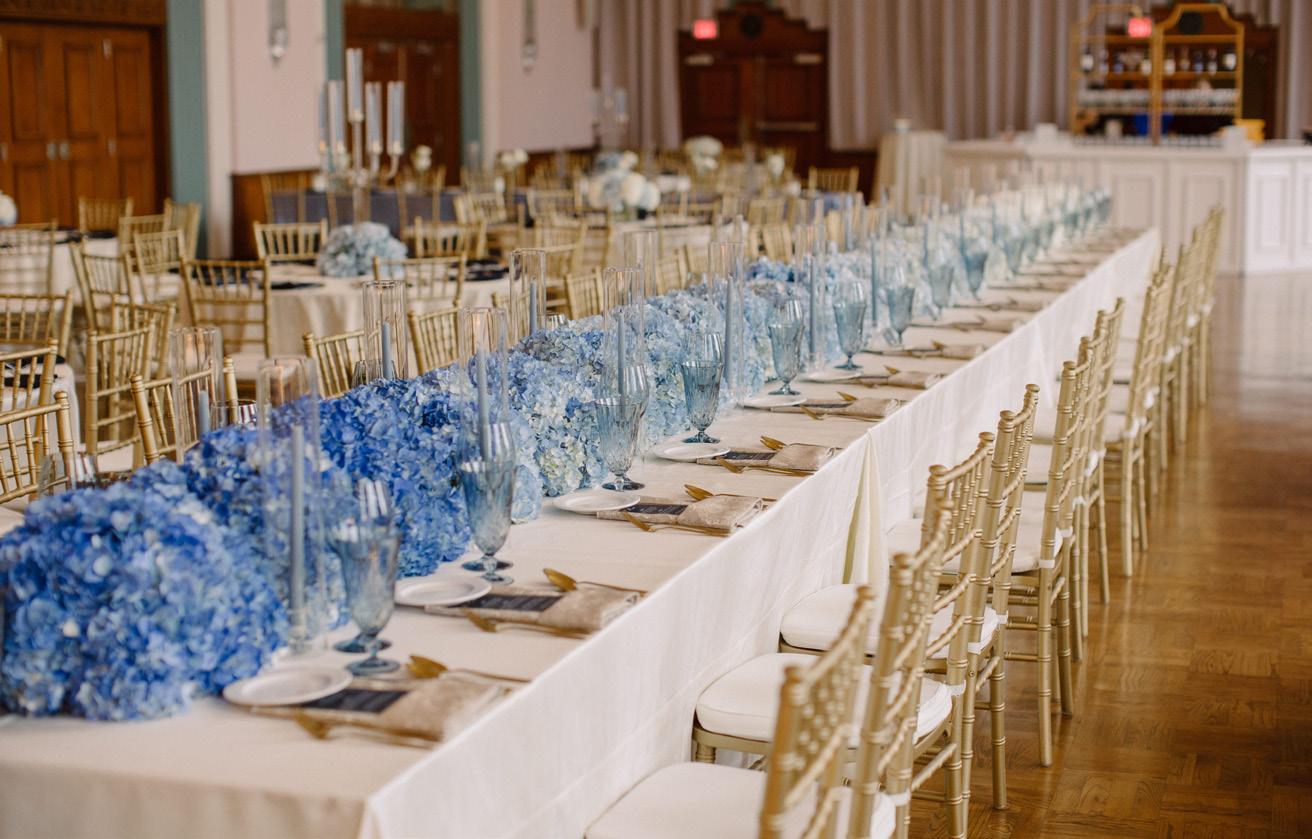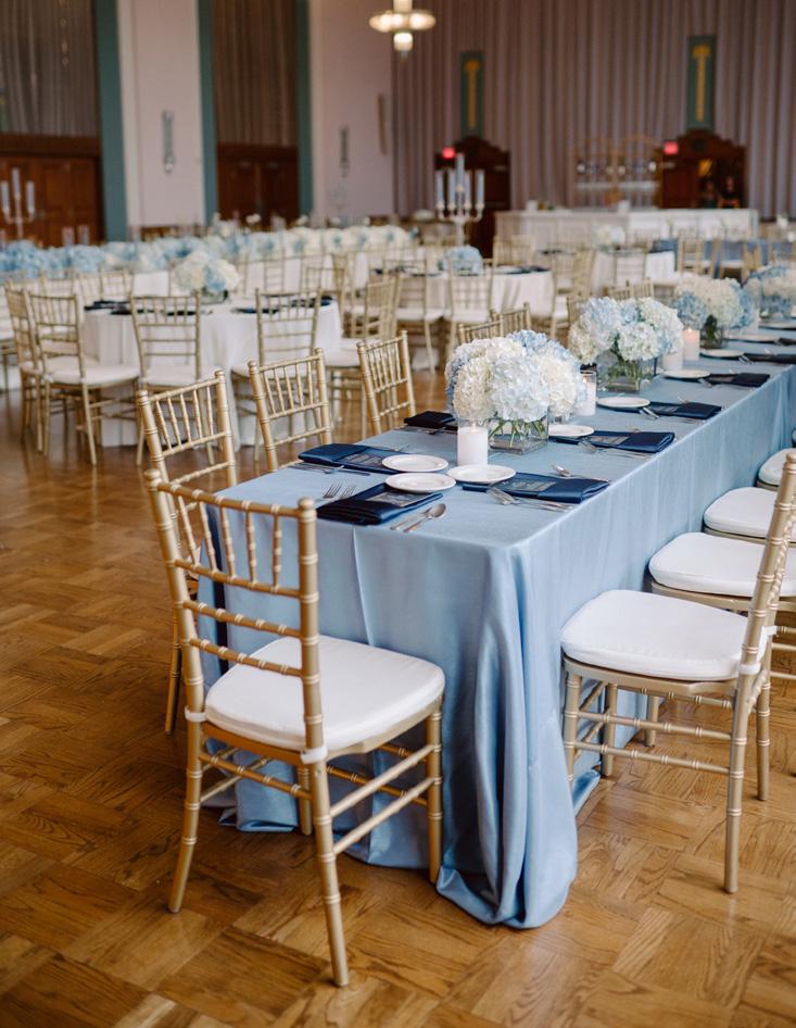 For the Light couple, their wedding effortlessly transitioned from an outdoor ceremony to an elegant indoor reception. Ombre blue hydrangeas, evocative of the serene sky, and blue taper candles made a huge impact on the head table.