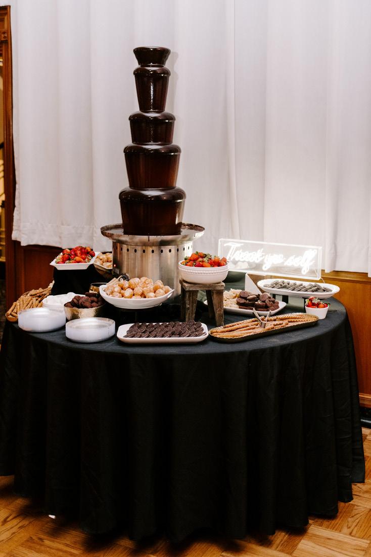 A chocolate fountain introduced a touch of decadent indulgence to the celebration. The cascading rich chocolate became a centerpiece of enjoyment, as guests delighted in dipping fruits and other treats!