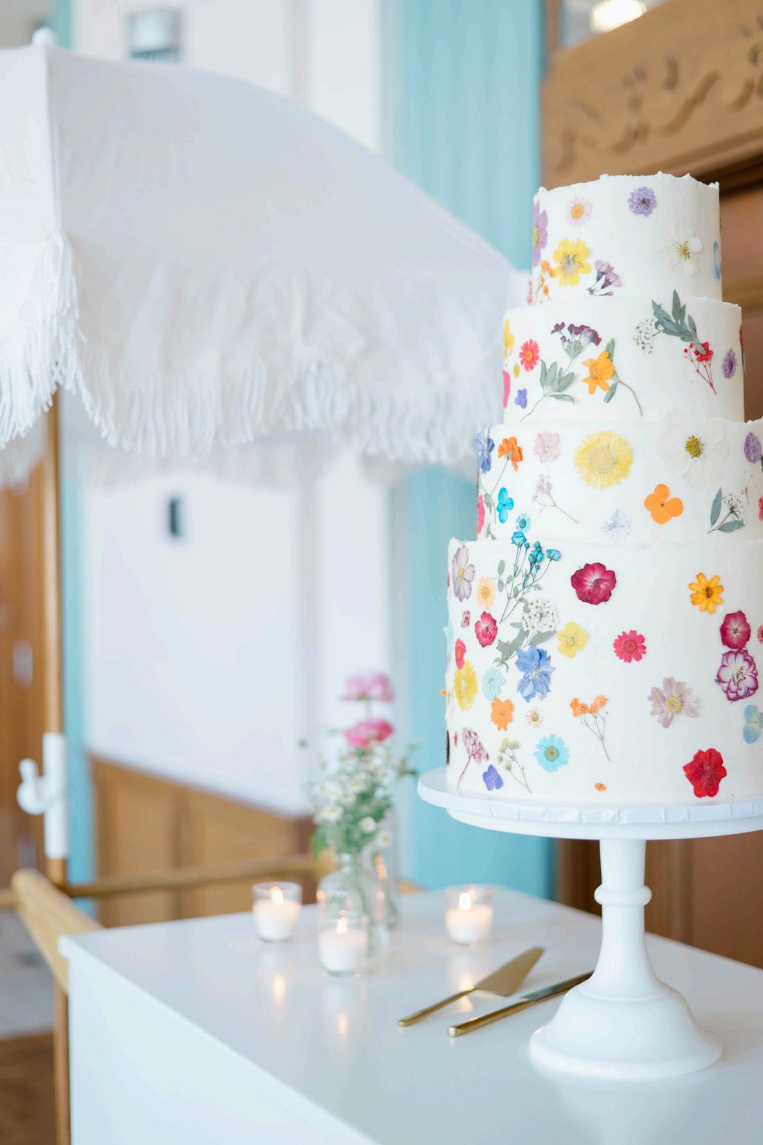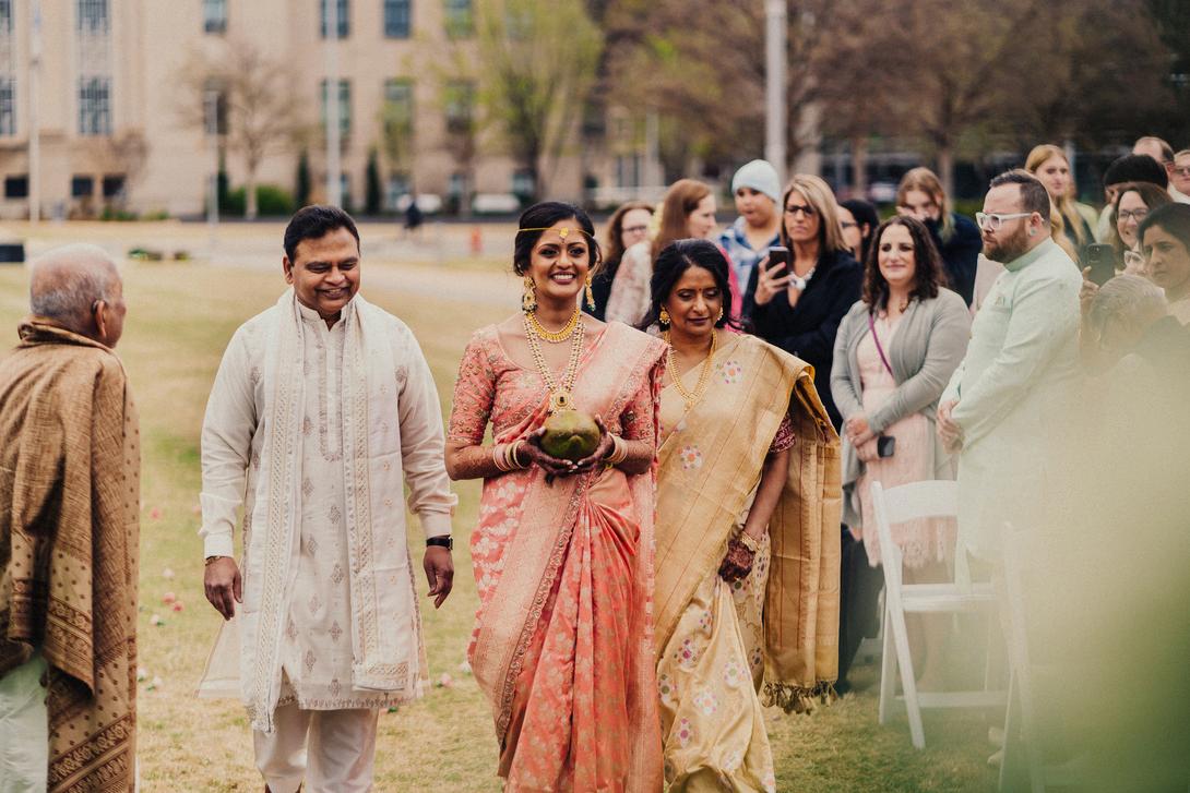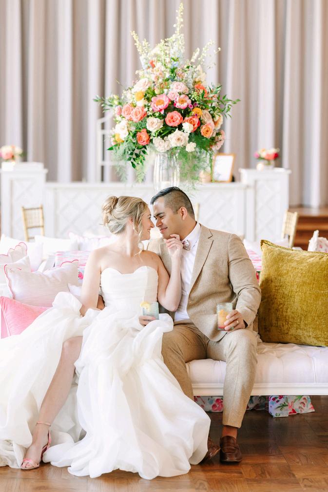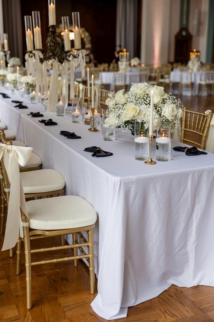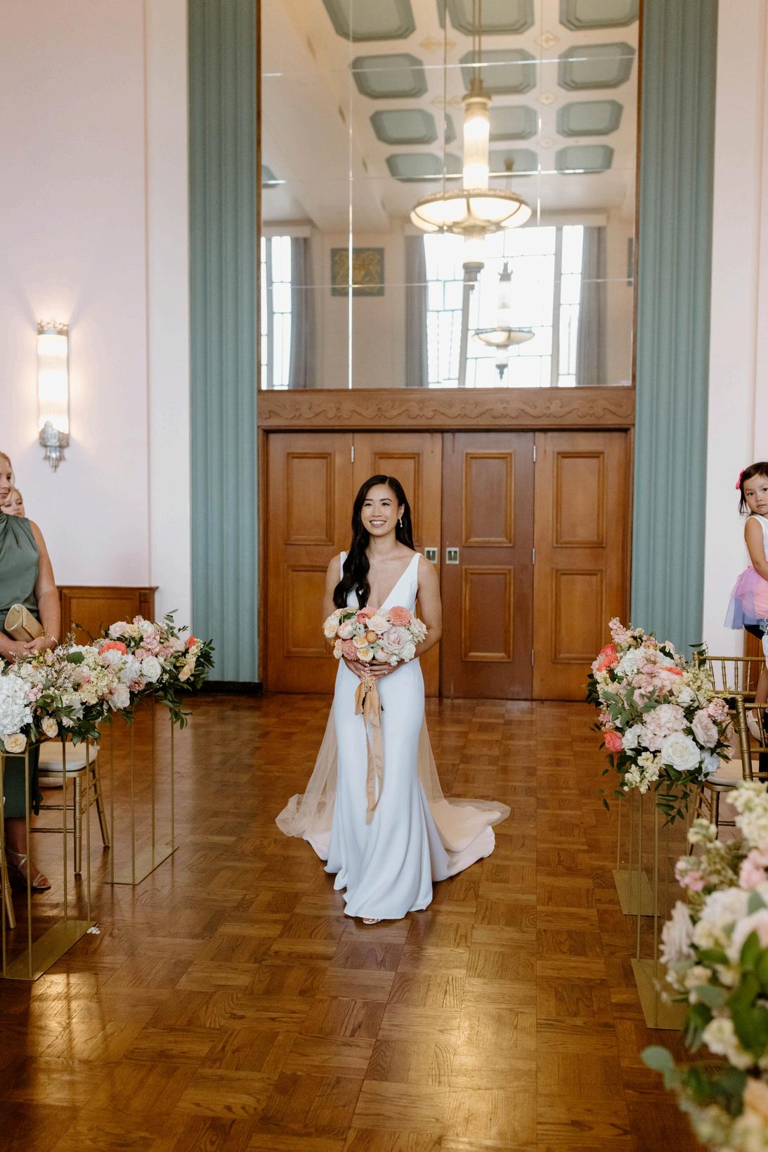 The florals were created with extra love by the Bride’s sister! This celebration also had beautiful bow details that spanned from the custom statement bow on her gown, her bridesmaids’ dresses, to the cake and even accents down the aisle!