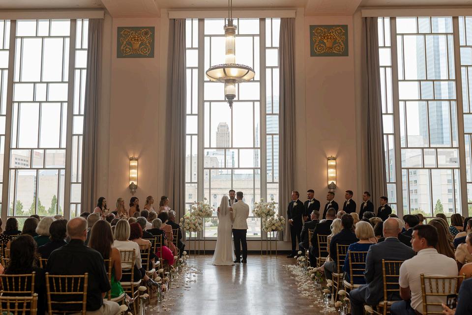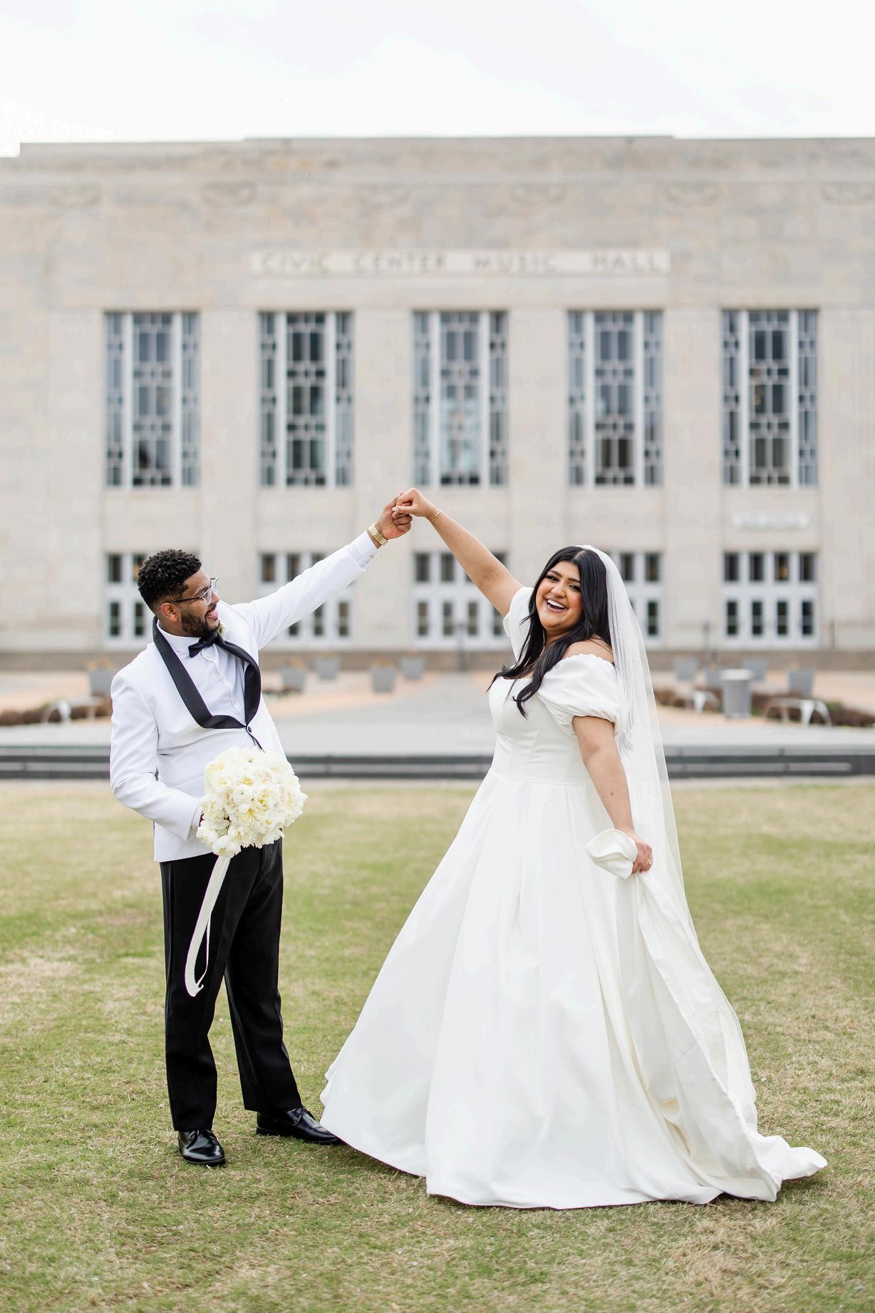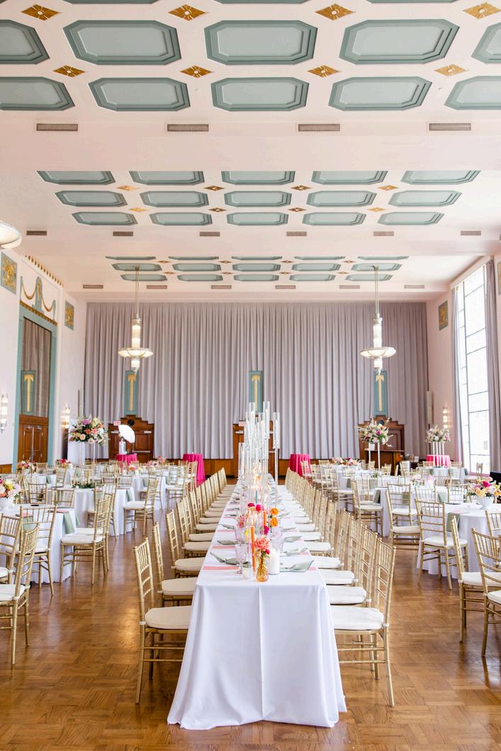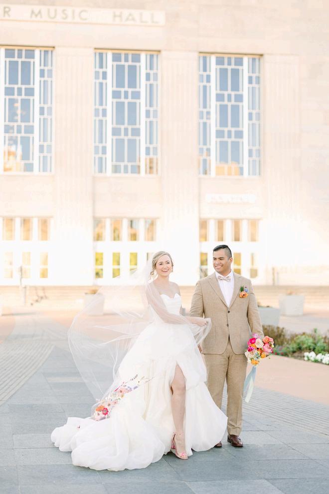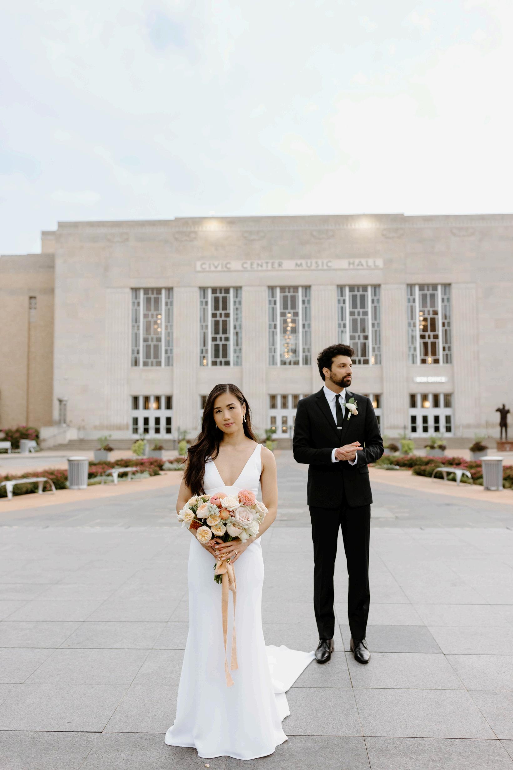 “The Civic Center Music Hall was the perfect venue for what we were wanting. Its historical elegance was perfect for our classic vintage theme wedding. My favorite detail were our custom cocktail napkins of our dog, Chelsea; and our custom made mimosa wall ” -Miranda (The Bride)