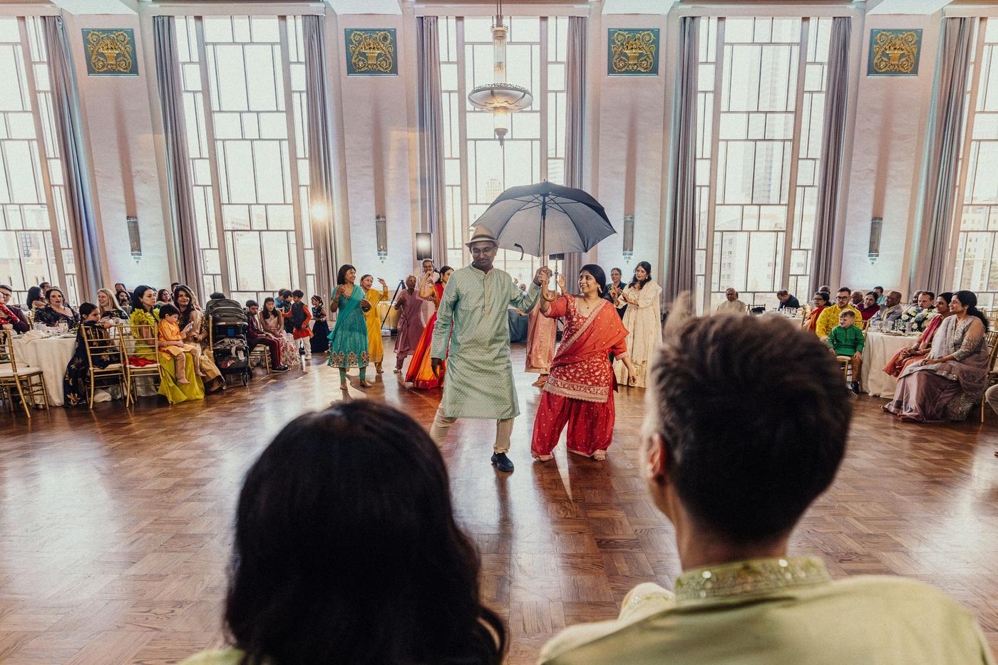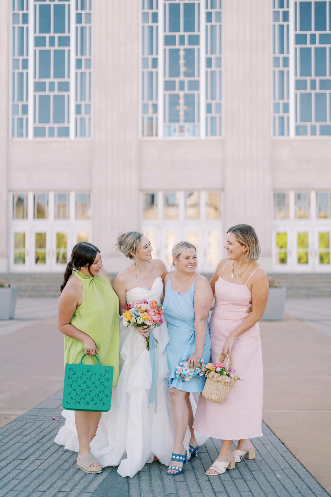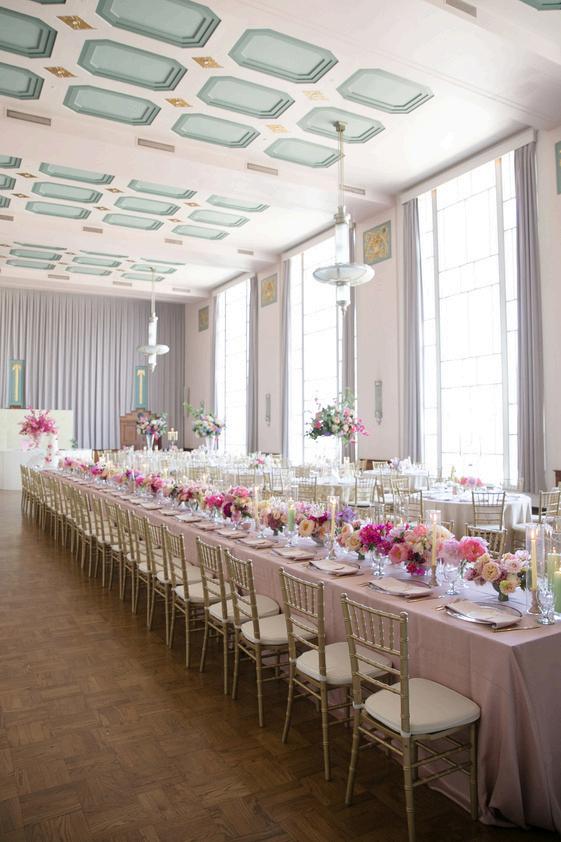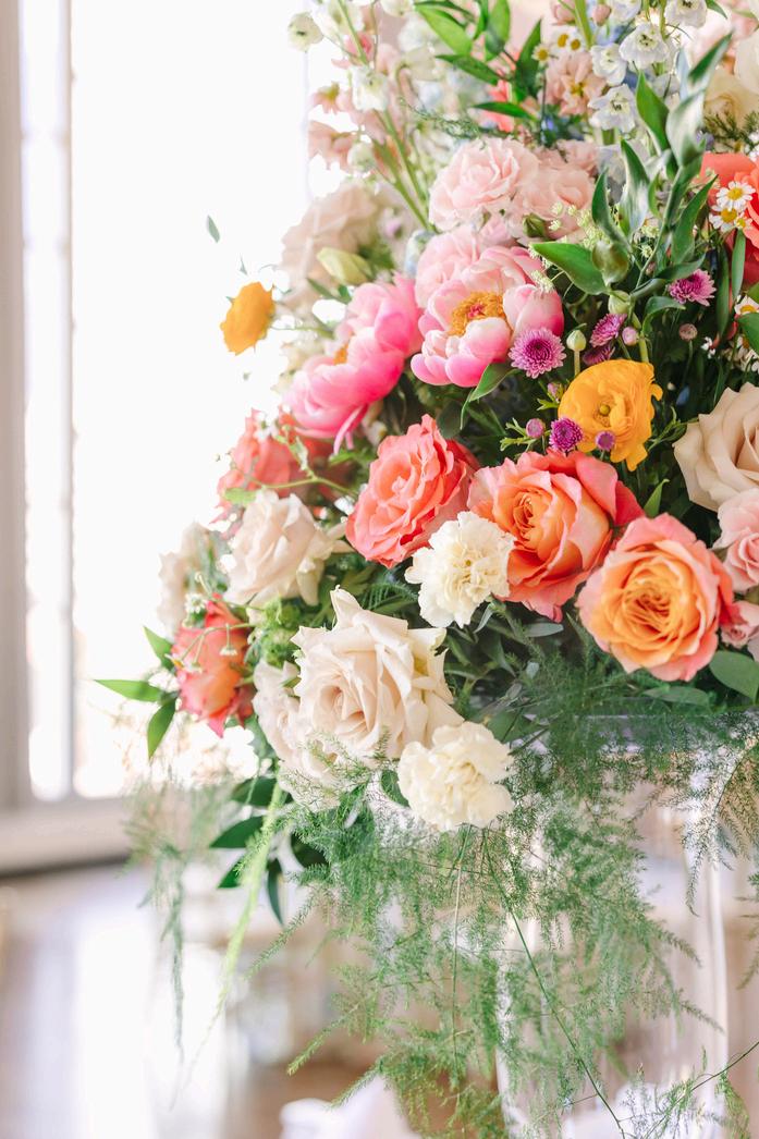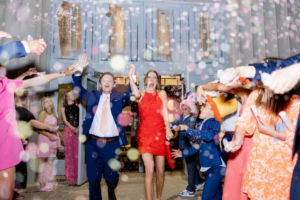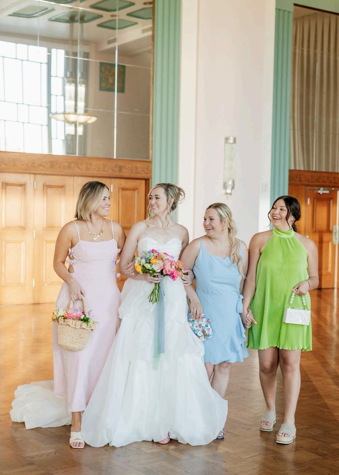 The bride pulled her inspiration from one of her favorite stores, Anthropologie! This Cinco de Mayo wedding filled the ballroom with bright colors and the mismatched bridesmaids’ dresses made a huge statement At the end of the night, Natalie changed into a red dress – just like her mom did on her wedding day!