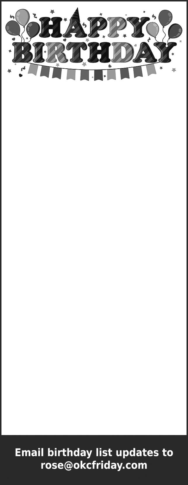 OKC FRIDAY P.O. Box 20340 Oklahoma City, OK 73156 (405) 755-3311 okcfriday.com