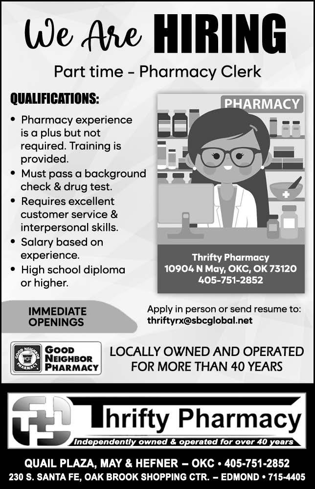 Thrifty Pharmacy 10904 N. May Ave. L Oklahoma City, OK 73120 (405) 751-2852 230 S. Santa Fe Ave. Edmond OK 73003 thriftypharmacyedmond.com