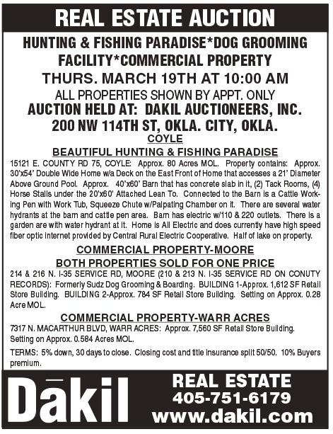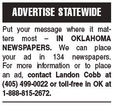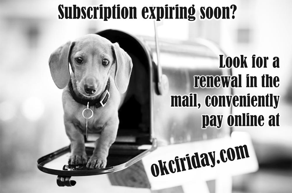 Official Legal Newspaper For OKLAHOMA, OKLAHOMA CITY and OKLAHOMA COUNTY, including NICHOLS HILLS and THE VILLAGE Oklahoma City FRIDAY, Office of publication, 10801 N. Quail Plaza Drive, P.O. Box 20340, Oklahoma City, OK 73156. FRIDAY is published each Friday by Nichols Hills Publishing Co., Inc. It is an official, legal newspaper, under Oklahoma law, published in Oklahoma County, primarily serving Oklahoma City but also The Village and Nichols Hills. Mail subscription price in county $35. elsewhere in Oklahoma $45, elsewhere U.S. $45. Newsstand price $1. Periodicals postage paid at Oklahoma City, OK.POSTMASTER: Send address changes to: FRIDAY, P.O. Box 20340, Okla. City, OK 73156. MEMBER: Oklahoma Press Association, National Newspaper Association, Greater Oklahoma City Chamber of Commerce, Northwest OKC Chamber of Commerce. Represented nationally by USSPI, New York, Chicago, Atlanta, Los Angeles, Detroit, Dallas.