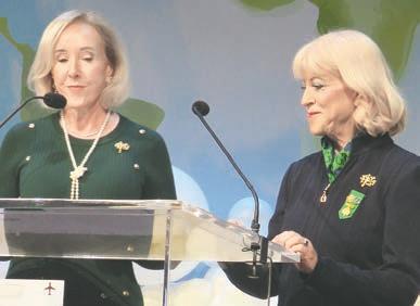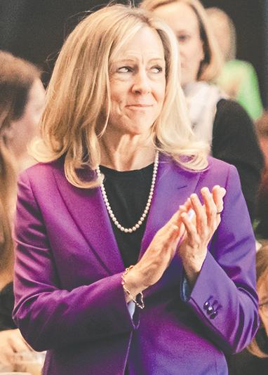 Above: Honorary Chairman Tricia Everest is lauded for her commitment to advancing opportunities for women and girls across Oklahoma. At left: Amelia Rose Earhart speaks on courage, resilience and leadership, encouraging audiences to embrace challenges and “learn to love life’s turbulence.”