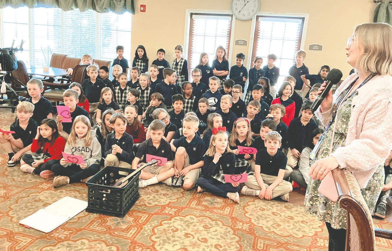 Second grade classes participated in a service learning project by visiting the Statesman Club Independent Living Community. Students spent time with the residents and sang several Valentine’s Day songs for their enjoyment. They also passed out roses and handmade Valentine cards to help spread kindness and joy. This visit is part of an ongoing second grade service learning tradition.