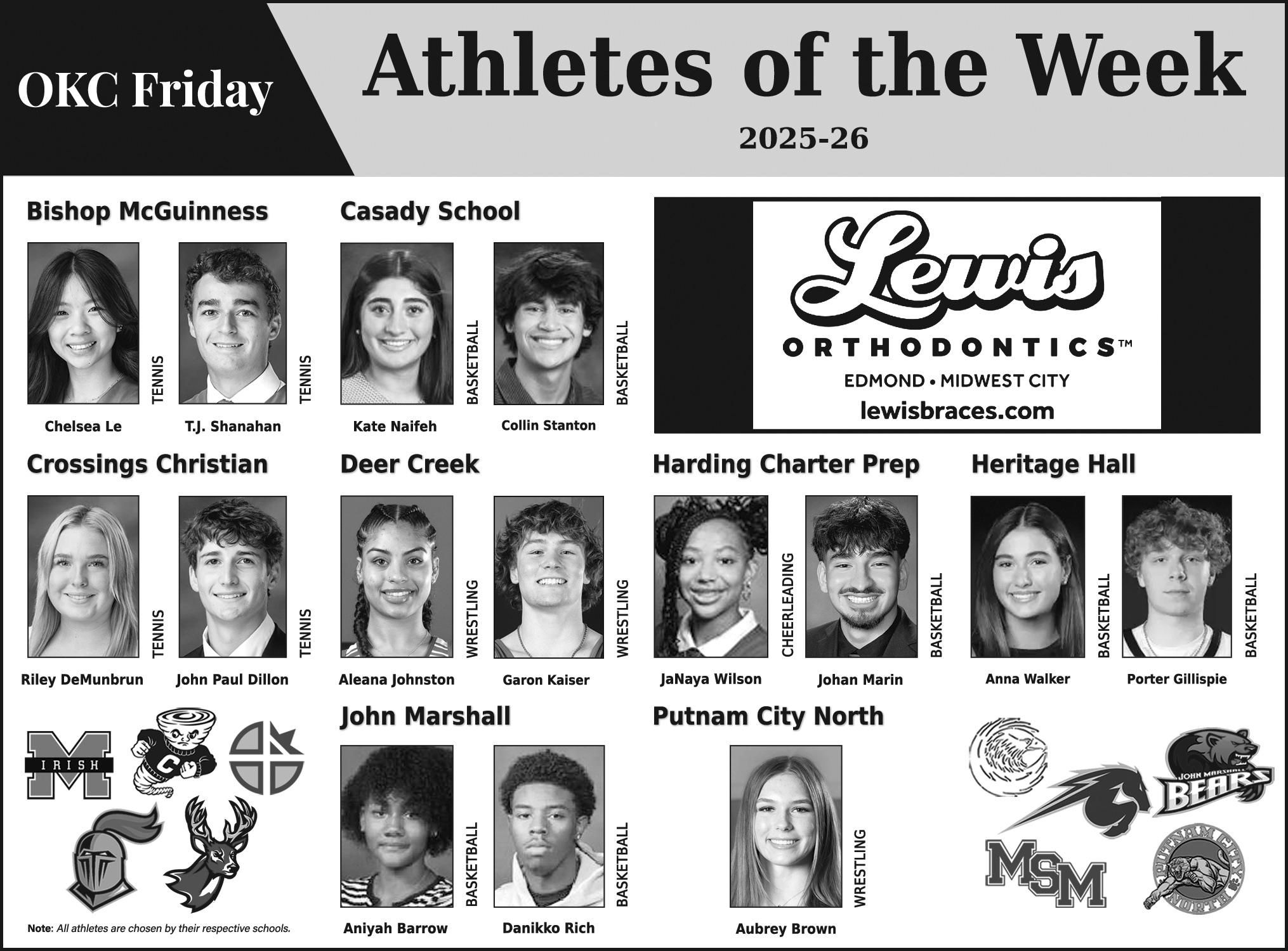 Fridayland honorees, listed by school, are:
