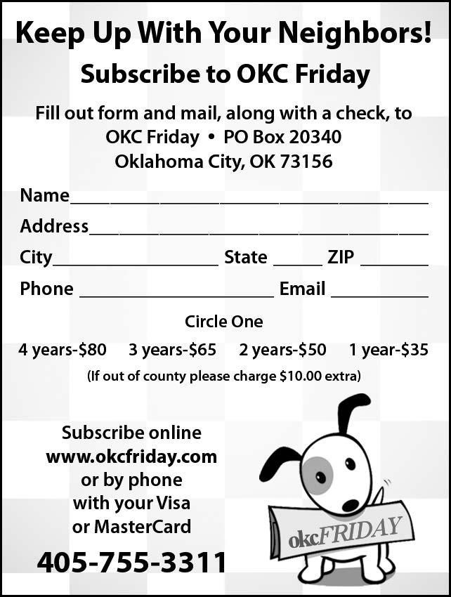 OKC FRIDAY P.O. Box 20340 Oklahoma City, OK 73156 (405) 755-3311 okcfriday.com