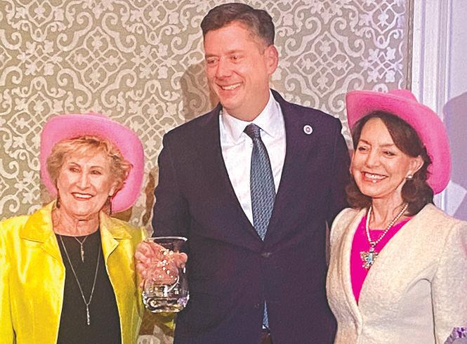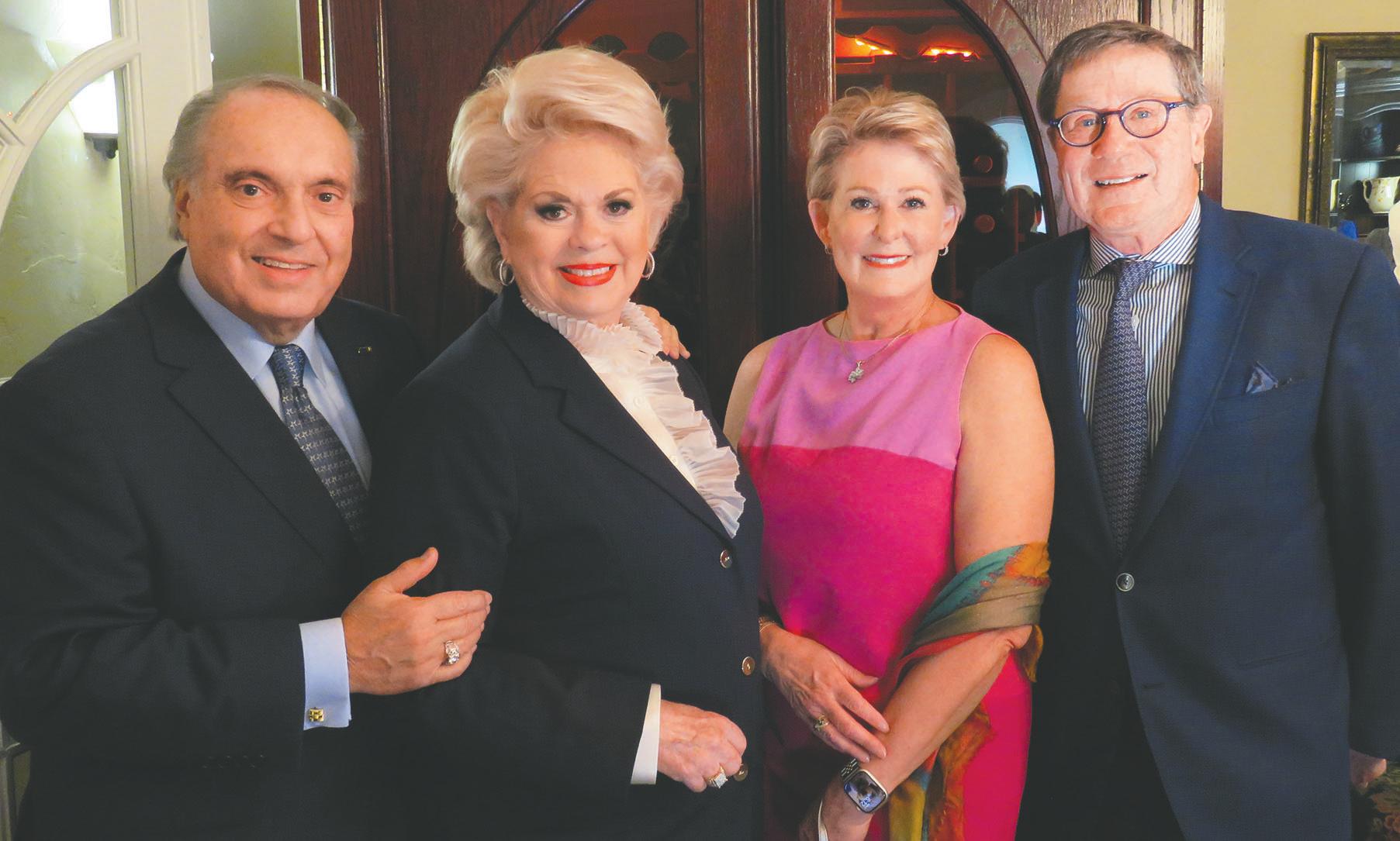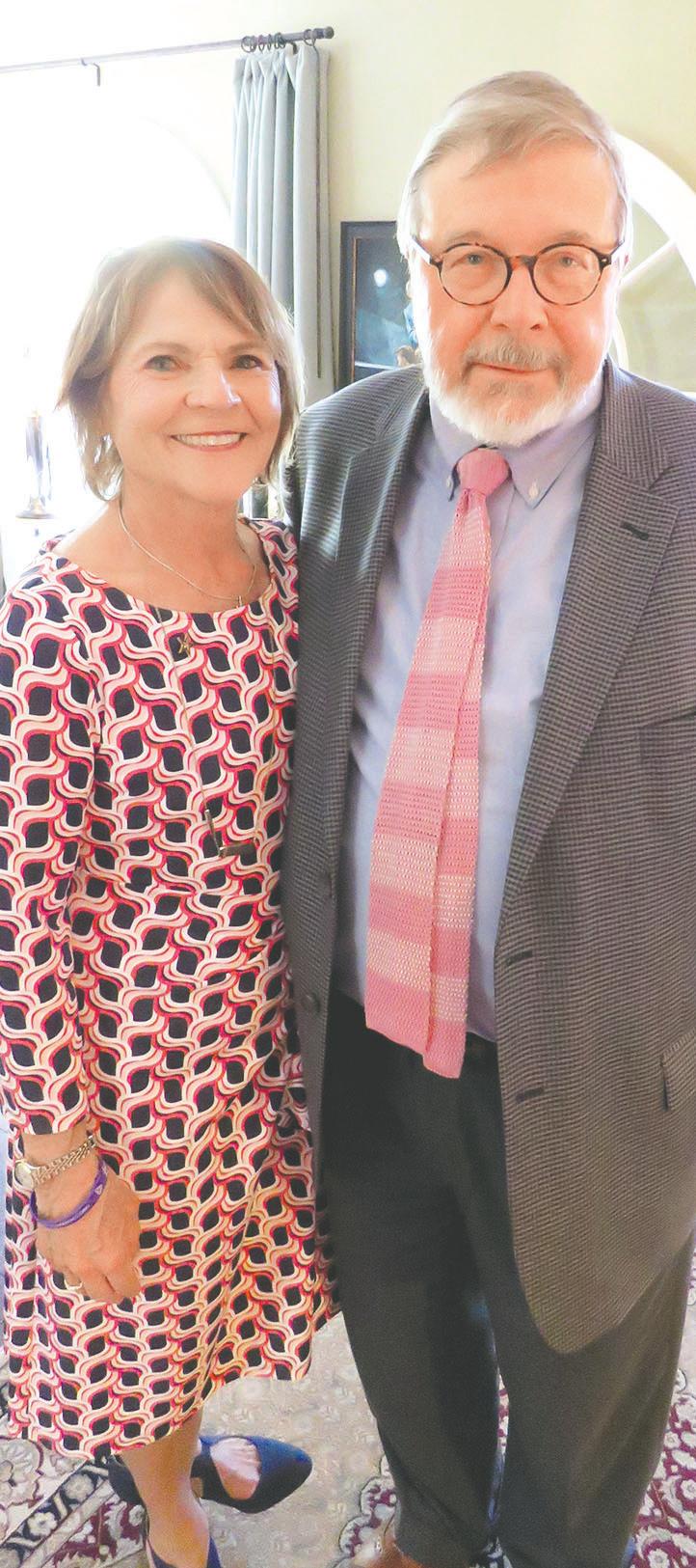Kathy and John Williams, below right, opened the doors of their home for a reception honoring The Societies of Oklahoma City University’s Awards of Excellence. At right: J.R. and Kirkpatrick-Petre Music and Performing Arts Award recipient Patsy Homsey and Dulaney-Browne Library Society honoree Hilarie Blaney and her husband, Kevin. The luncheon when the awards were presented was earlier this week.