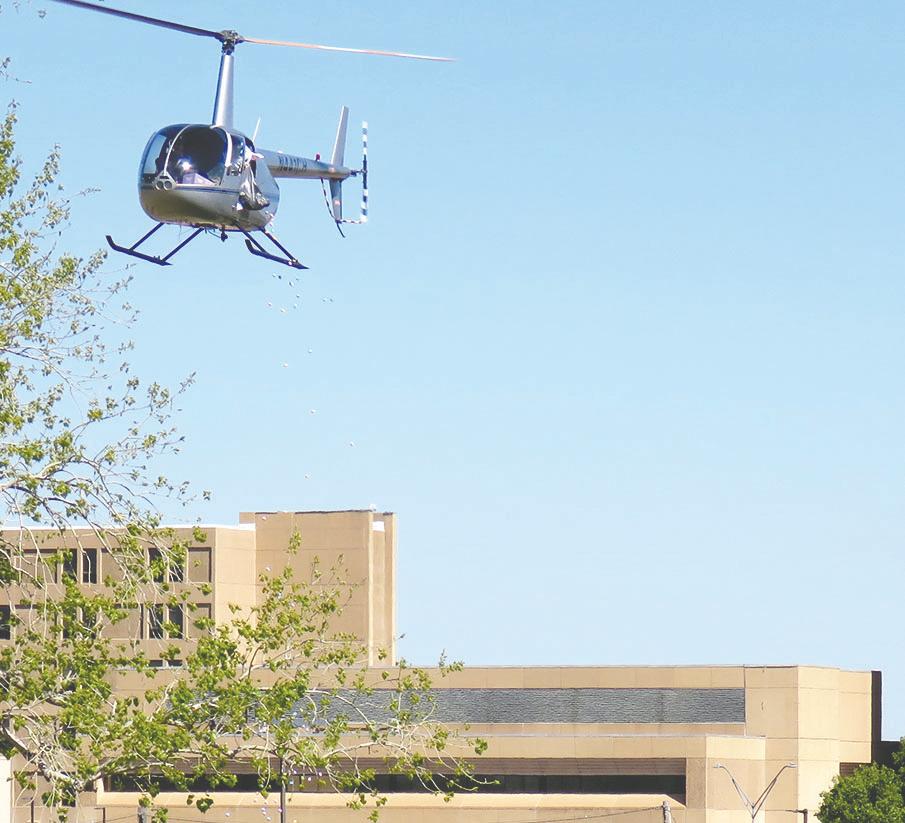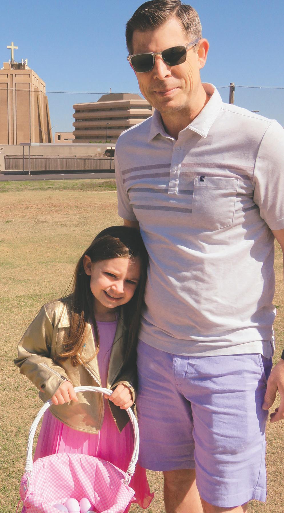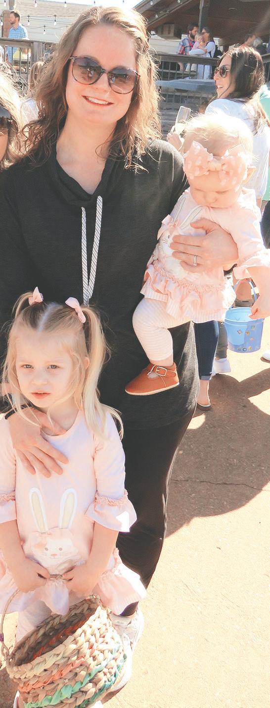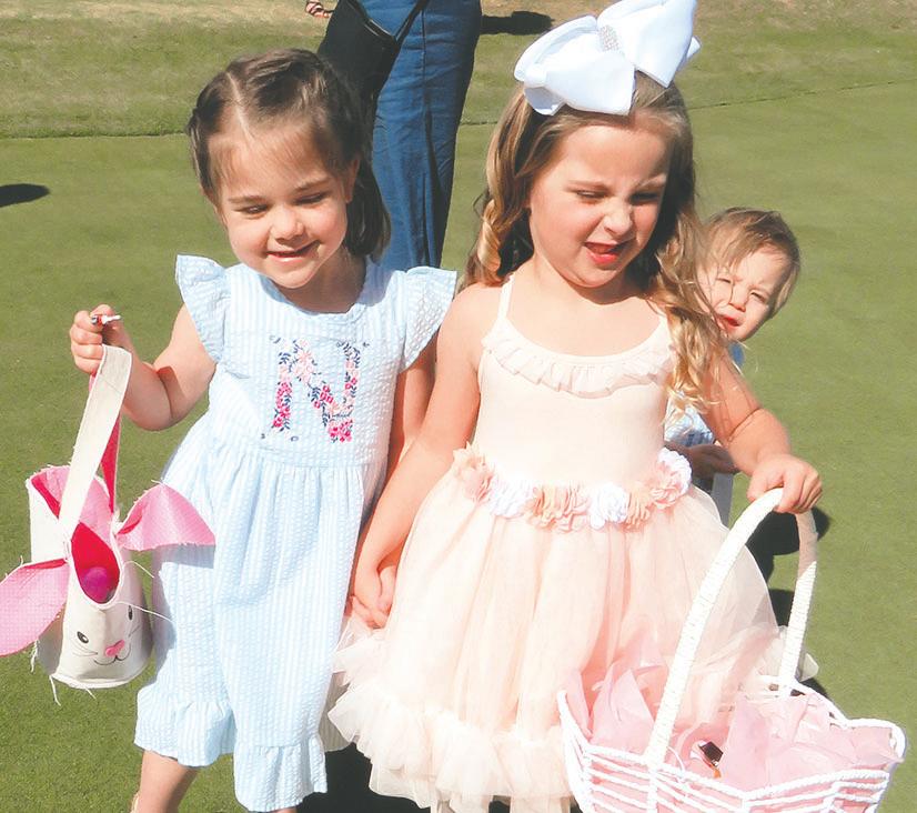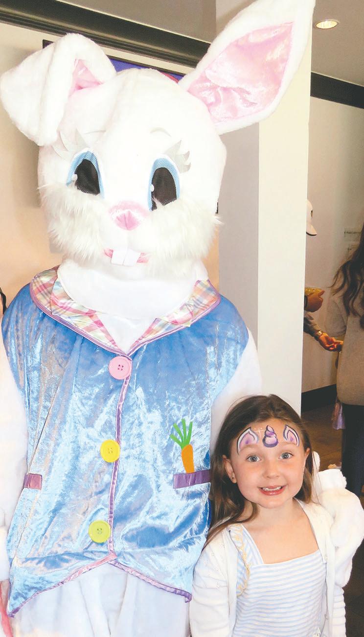 .. Hopping down the bunny trail. The Easter Bunny was aboard a helicopter which dropped Easter Eggs for The Greens Golf and Country Club’s annual hunt. The festivities included an extensive brunch, as well as face-painting and balloon art. At left: The bunny does a photo op with Ella Bayouth. For more photos, see Page 13.