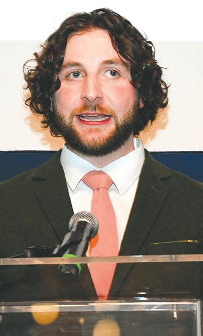 Luke Wittmann speaks to the audience after receiving the Outstanding Harding Fine Arts Alumni Award.