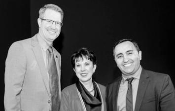 Harding Fine Arts Academy presdented its 10th Annual Leadership in Arts and Education Awards. Above: Robert Clements, Max Weitzenhoffer and Bob Anthony. Weitzenhoffer was the recipient of the John and Joy Reed Belt Award. At right: Camal Pennington, Governor Frank Keating (Innovation In Education Awardee) and Shannon McKenrick-Okou.