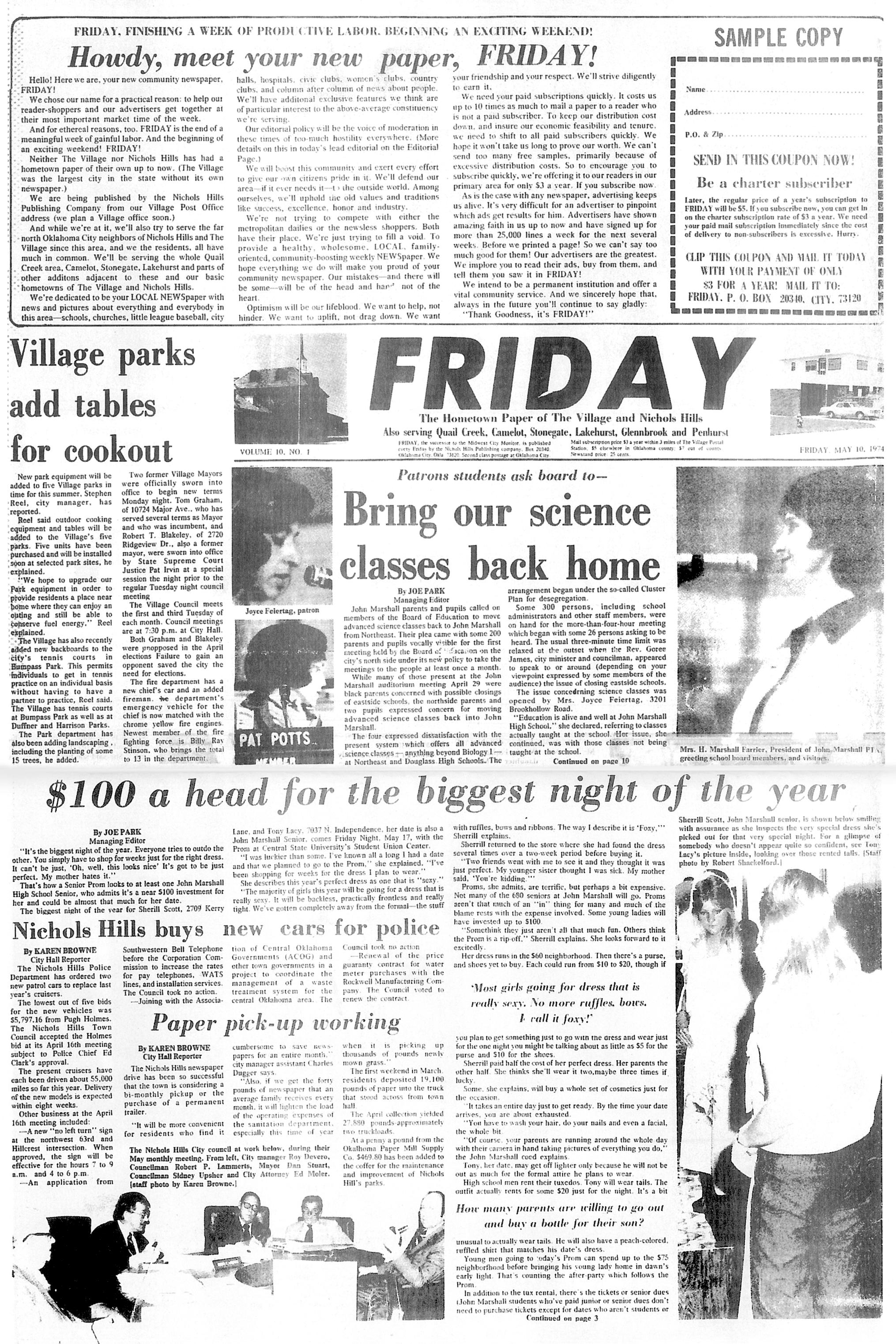 but within the year, Gourley was threatened with a lawsuit from an Asian newspaper which had registered the name FRIDAY. Gourley quickly changed the name to OKC FRIDAY Now, as we celebrate our 50th year of all local news, we want to thank all of our readers for your support.