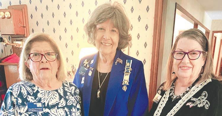 WELCOMING OTHER DAR MEMBERS. At their recent annual membership tea, members of Colonel John Starke, Sr. Chapter welcomed Oklahoma Society Daughters of the American Revolution Regent Grace Ellsworth of Cushing, First Vice Regent Peggy Evans of Jenks, OSDAR Registrar Sue Cline of Cushing, Capital District Director Karla Killinger of Oklahoma City and prospective members from the metro area. Carolyn Rawlings of The Village hosted the event in her home. Attendees enjoyed rosemary lemonade and green tea, finger foods, and desserts. The chapter is raising funds to provide welcome packs to new citizens at the naturalization ceremony in OKC in May. DAR is a national nonprofit women’s lineage organization that promotes patriotism, historic preservation, and education whose motto is God, Home, and Country. From left: Carolyn Rawlings who hosted Tea, Marcia Yanish and Linda Moore, all members of Colonel John Starke, Sr.