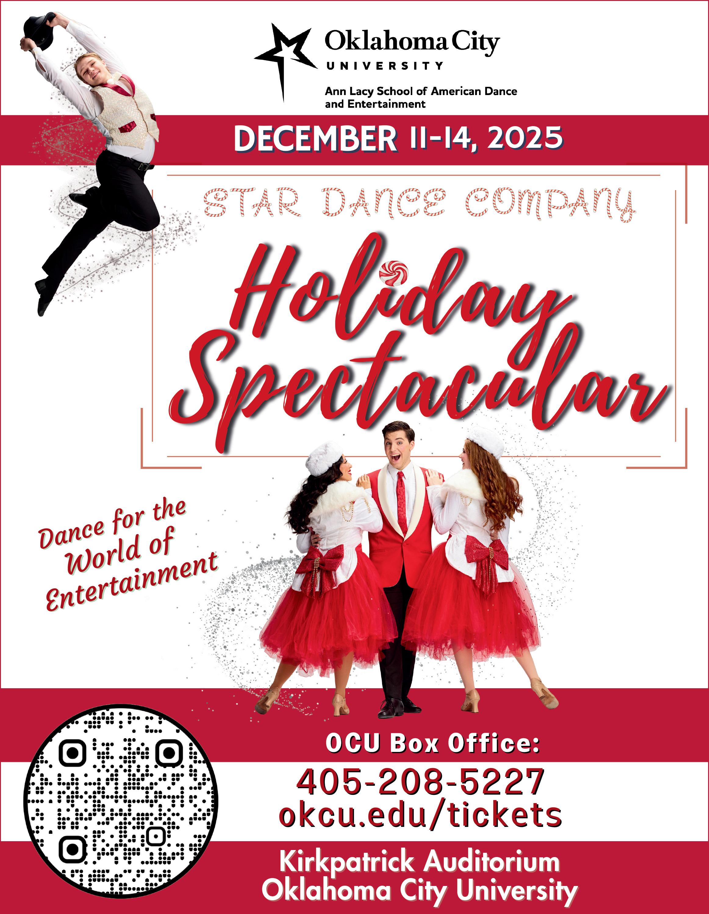 “Holiday Spectacular” will be performed at 8 p.m. on Dec. 11, 12, and 13, with matinee showings at 2 p.m. on Dec. 13 and 14. All performances take place at the Kirkpatrick Theater, in OCU’s Kirkpatrick Fine Arts Building.