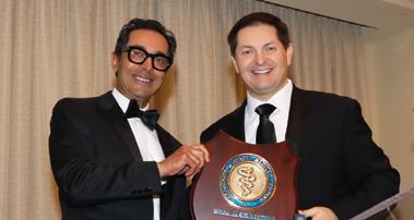 Matthew Jared, MD handing the Presidential gavel to Brad Margo, MD