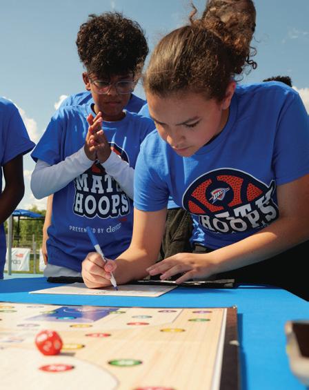 Thunder Math Hoops, presented by Devon Energy, is a fast-paced board game and mobile app that teaches students fundamental math skills through the basketball statistics of their favorite NBA and WNBA players.