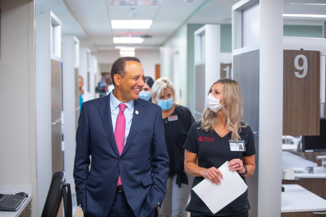 On August 23, 2022 the OU College of Dentistry officially cut the ribbon and opened the doors to its new 5,000-square-foot, stateof-the-art facility constructed within the OU Health Physicians Schusterman Center Clinic building on the OU-Tulsa campus. Third- and fourth-year students from the OU College of Dentistry will provide care under the supervision of licensed dental faculty members. The clinic is under the direction of Chalmers Rieger Wood III, DDS, an OU College of Dentistry graduate and faculty member who also has his own private dental practice in Tulsa.The expansion of OU College of Dentistry patient care to Tulsa is important for increasing access to dental services in Tulsa and northeastern Oklahoma. The clinic will provide comprehensive dental care to both adults and children beginning at age one.