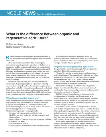 What is the difference between organic and regenerative agriculture? By Courtney Leeper Noble Research Institute writer