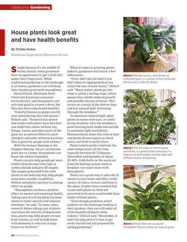 Above | Holiday cactus, also known as schlumbergera, is a genus of the cactaceae family and is native to Brazil. David Hillock photo Above | The ZZ plant, or zamioculcas zamiifolia, is a good choice because it is tolerant to both bright and low light and different levels of watering. David Hillock photo Above | Peace lilies are a popular houseplant because they are easy to grow.